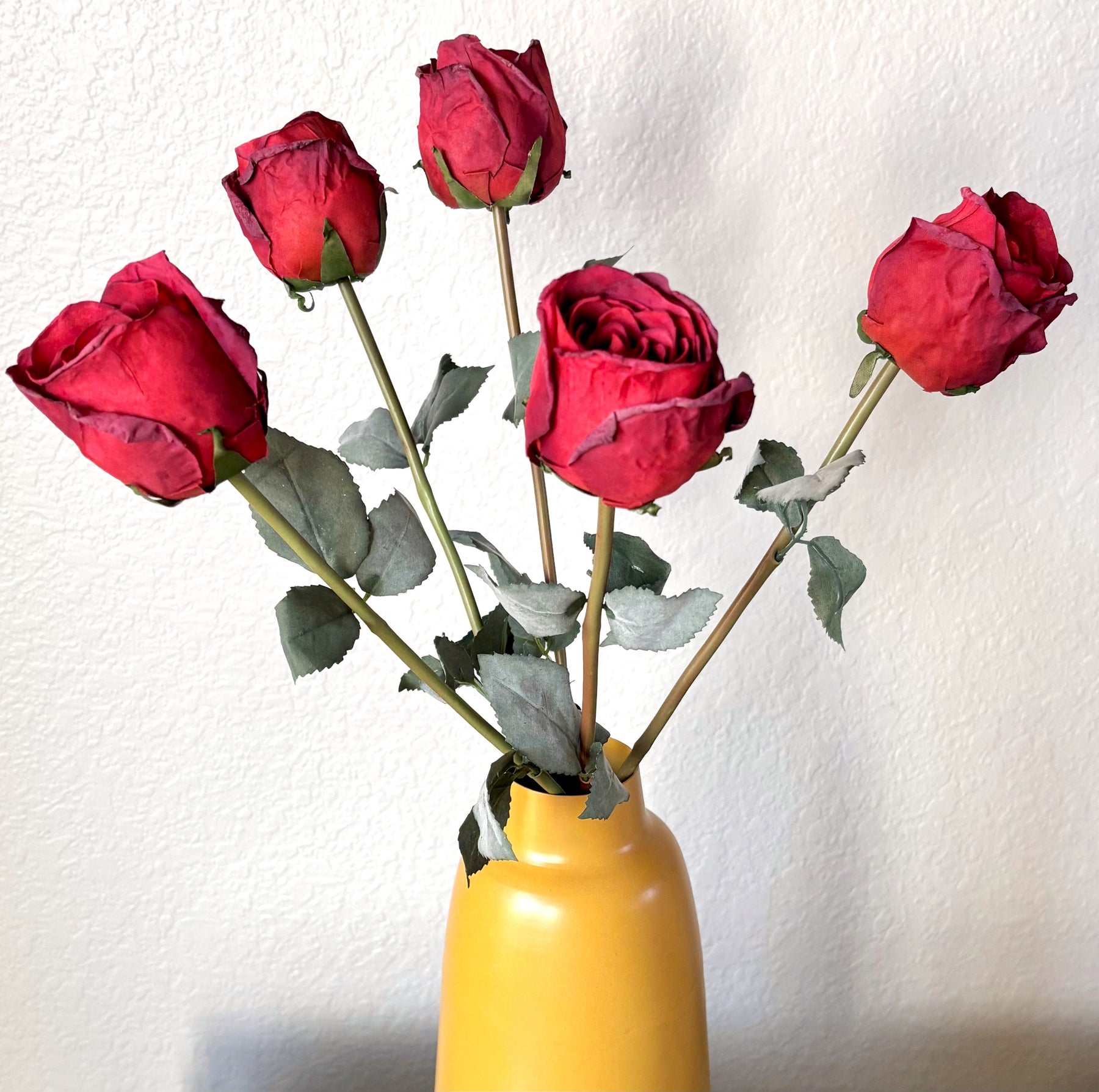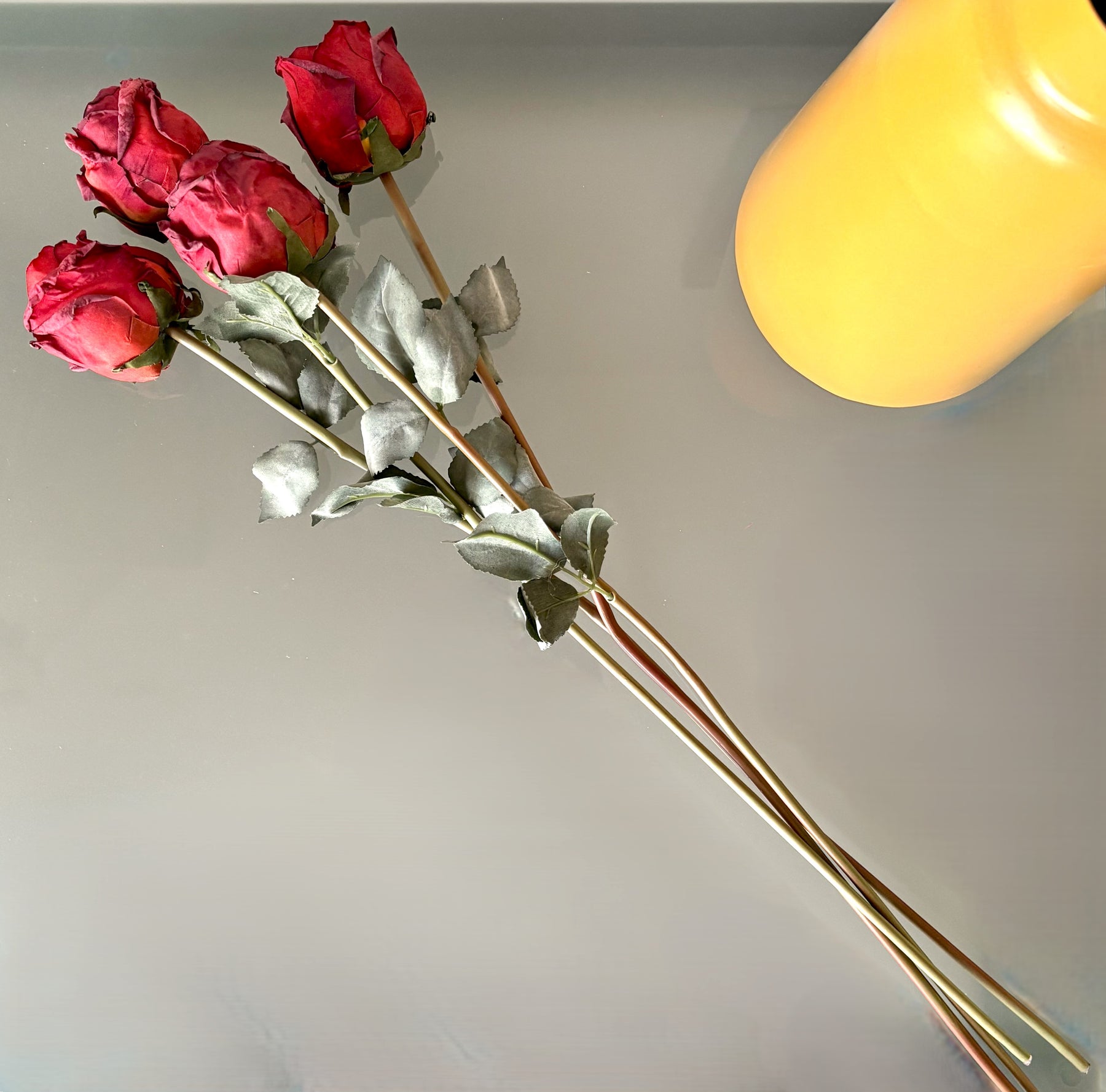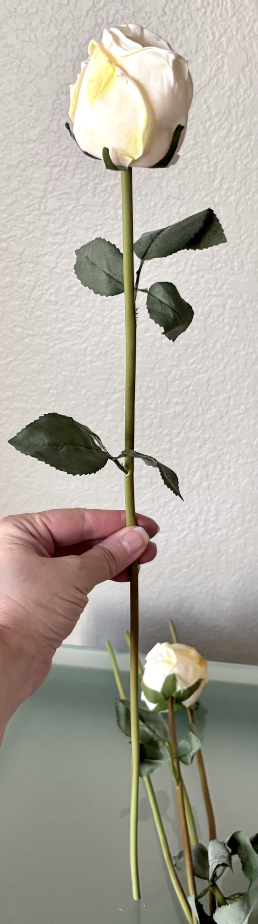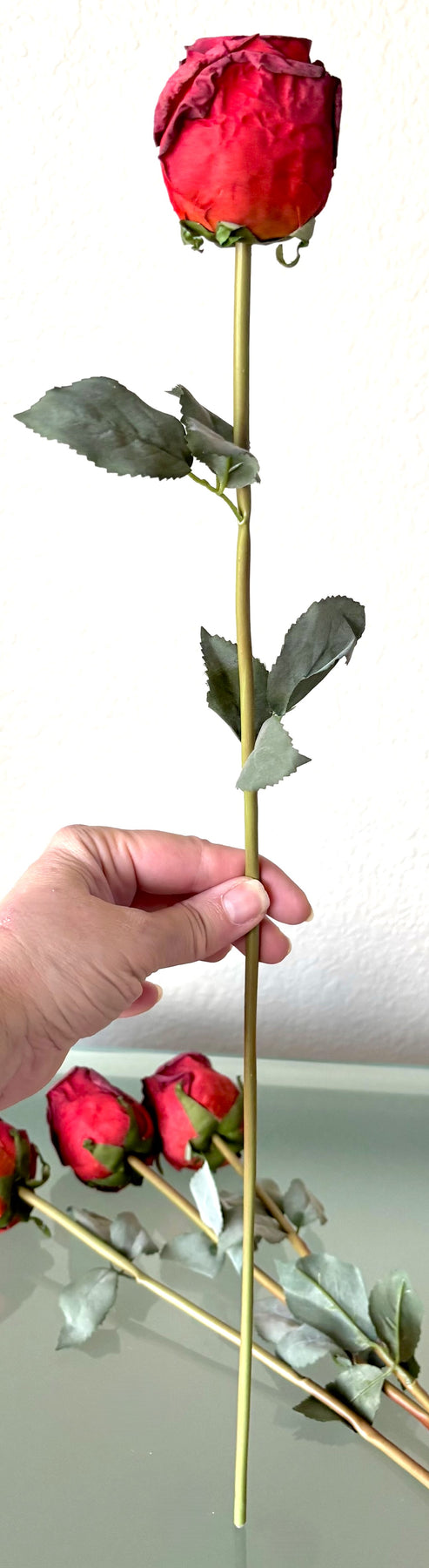 These long-stem roses would make a great Valentine's Day arrangement! These are perfect to display by themselves or to place in a mixed arrangement. They feature large buds; beautiful and very realistic looking. Each bud is generously-sized, measuring approximately 2 1/4"L x 2"W.