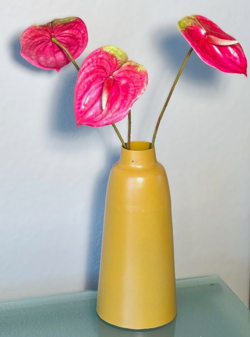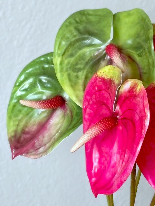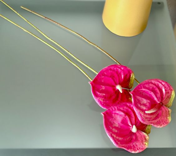 * You will receive a bundle of three anthurium stems in vibrant pink with a bit of chartreuse variegation at the top of flower