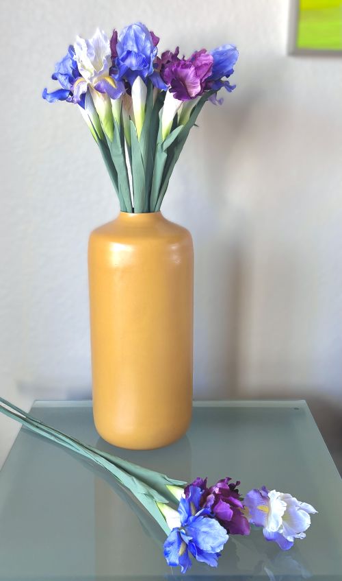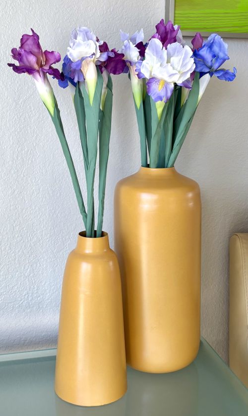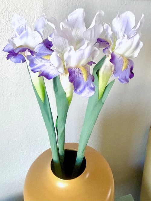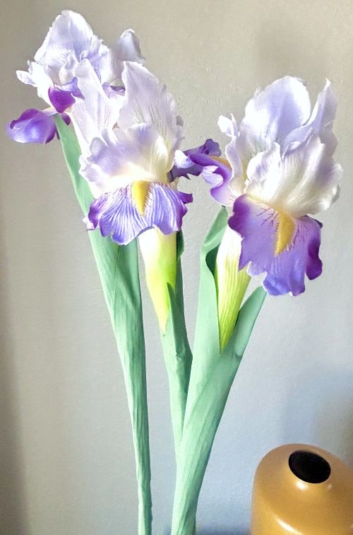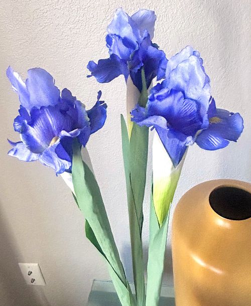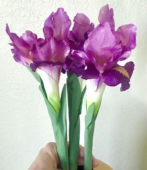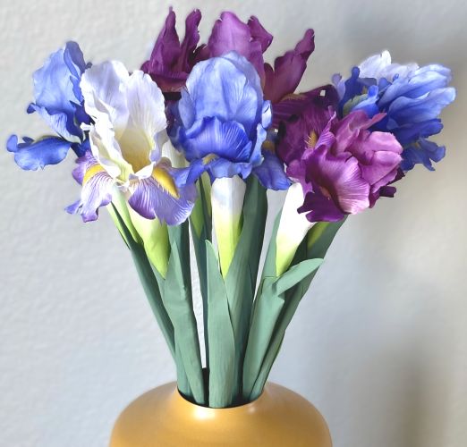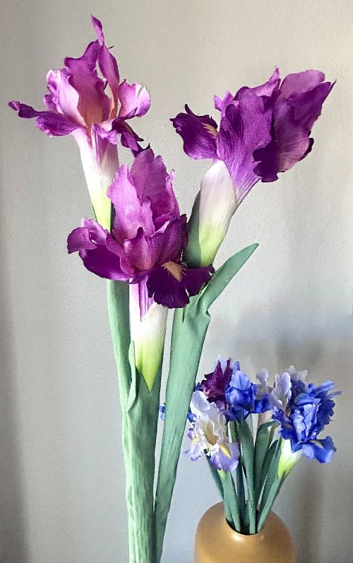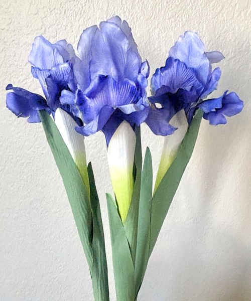 These fabric Iris stems stand tall and majestic. The beautiful stems stand a tall 27 1/2". These vibrant flowers make a fabulous display on their own, or mixed in with other flowers or foliage to create an extravagant arrangement.