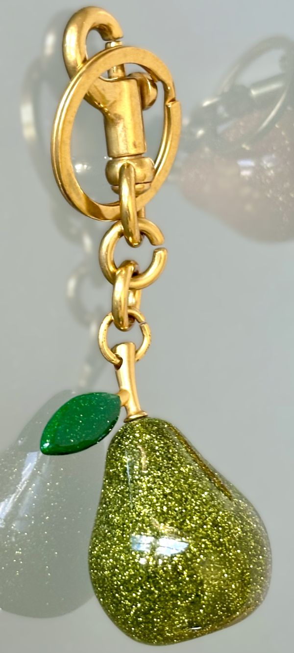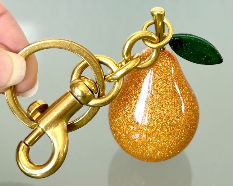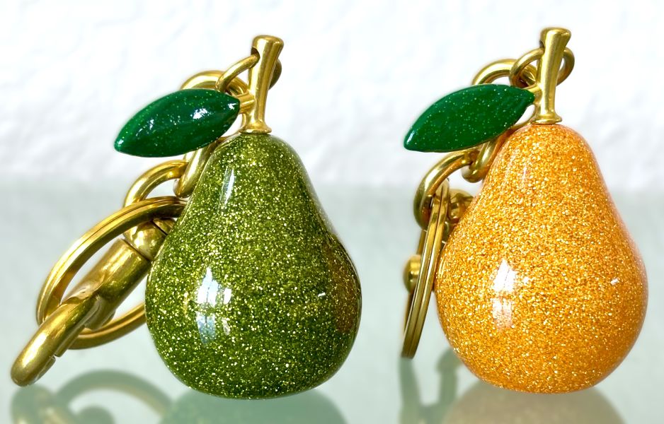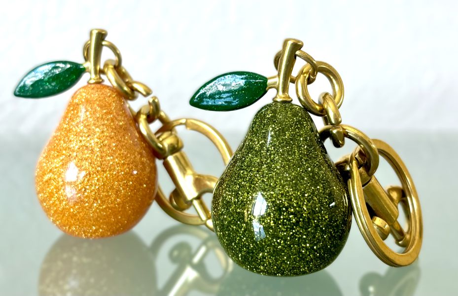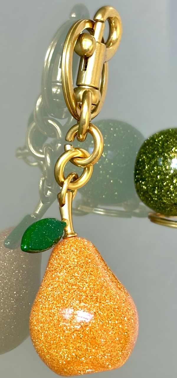 Constructed with solid resin and sturdy hardware, these pear-shaped bag charms/keychains are built for long-lasting use. The elegant figural design guarantees a stylish appearance from all perspectives.