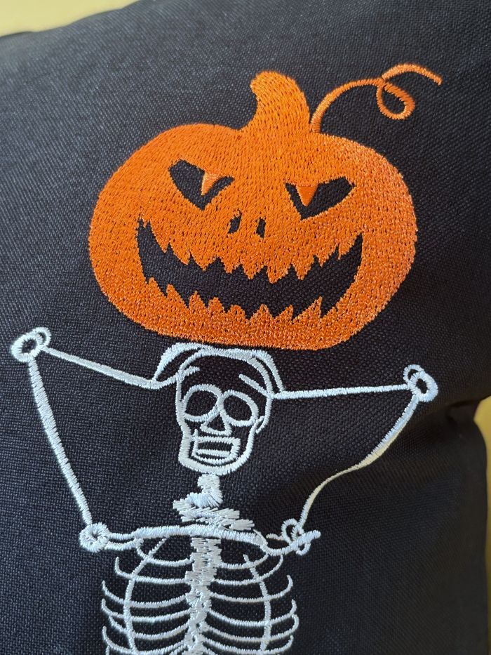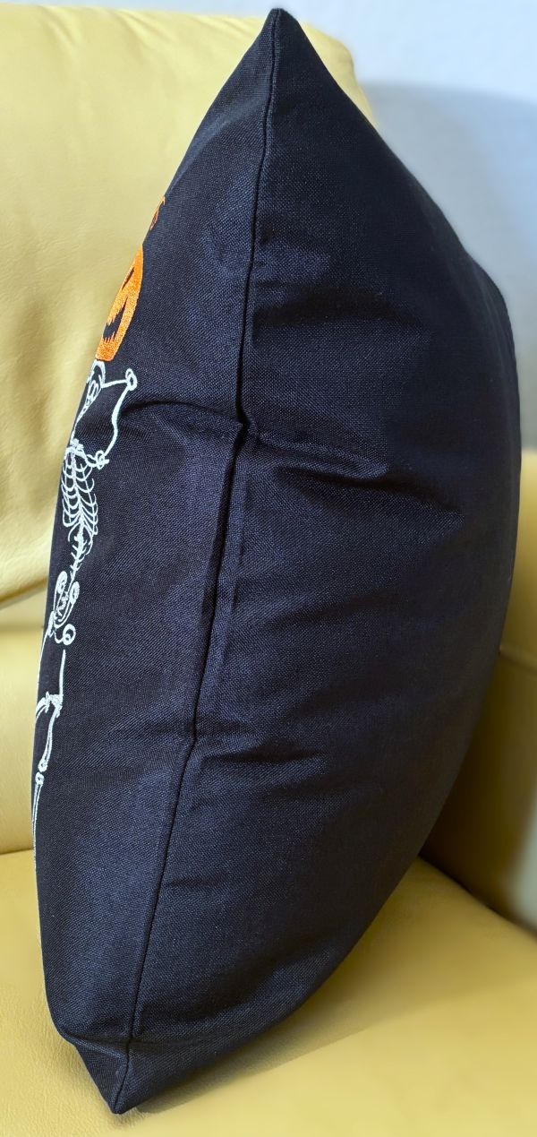 Embroidered Yoga Skeletons Holding Jack O' Lanterns Pillow Cover (2 sizes)