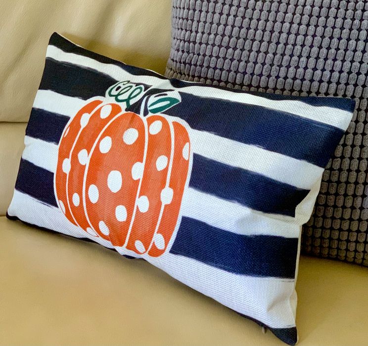 Introducing our cute stripes & polka dot pumpkin throw pillow cover, the perfect addition to your home decor this fall season! Measuring 12" x 20", this cushion cover is designed to bring a touch of autumn warmth and whimsy to any space. Crafted from high-quality materials, our accent pillow covers are not only stylish but also durable, ensuring they can withstand the hustle and bustle of family gatherings and cozy nights in.
