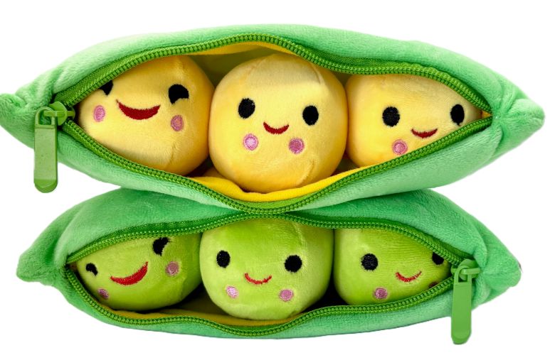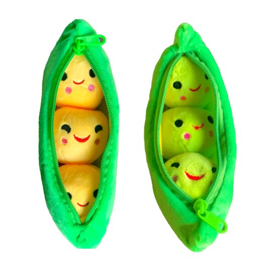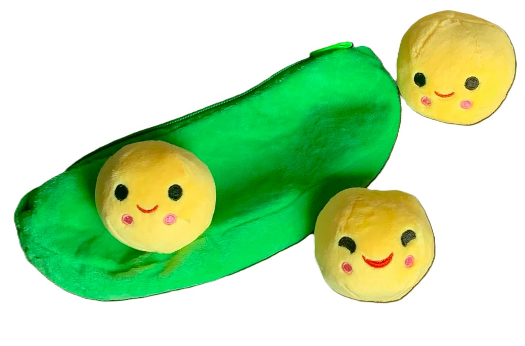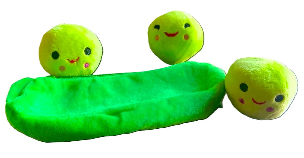 The 'Peas in a Pod' plush brings a touch of whimsy and fun to playtime, making it a unique addition to any toy collection. Whether you're looking for a cute gift or a new friend for your little one, these plush peas in a zippered pod are sure to bring smiles and joy.