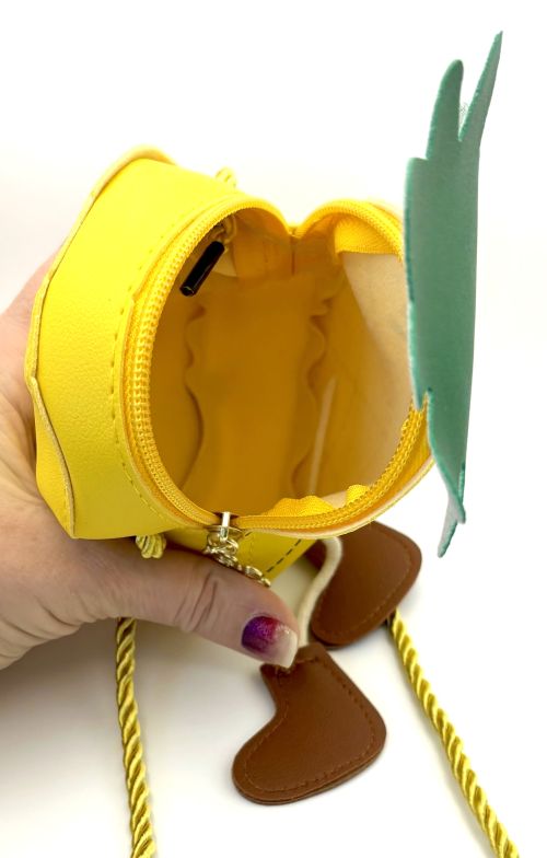 Introducing the adorable Children's Pineapple Crossbody Purse – the perfect accessory for your little one's adventures! This Kawaii-inspired purse is not just a bag; it's a delightful companion that your child will love to carry everywhere. With its vibrant yellow color and charming pineapple design, this crossbody bag is sure to catch the eye of every child and parent alike.