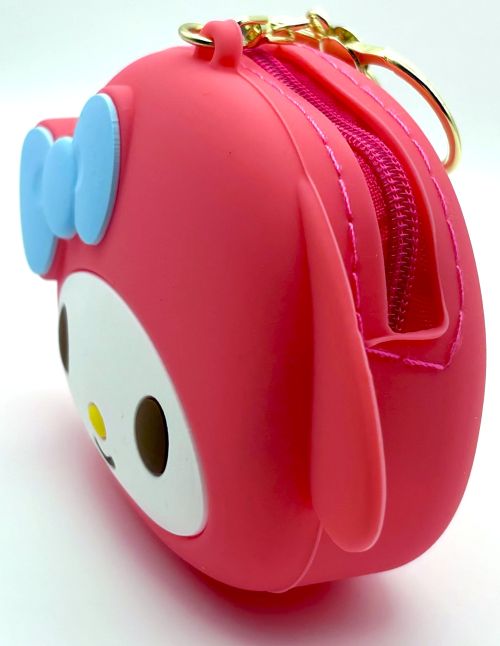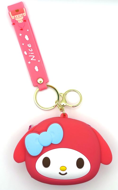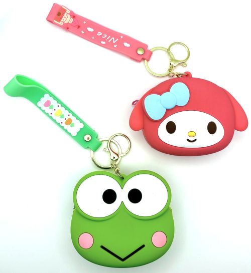 Welcome to the world of Hello Kitty & Friends with this adorable wristlet coin purse featuring Keroppi and My Melody. Designed for all the Kawaii lovers out there, this coin purse is the perfect accessory to add a touch of cuteness to everyday life. It's available in the darling frog Keroppi or pretty My Melody. This coin purse has several different uses; it has a handy wristlet strap for carrying, a clip to hang it on many different things, and a key ring. It can be carried on its own, used as a bag charm or you can hook it on to many different things, and a keychain.