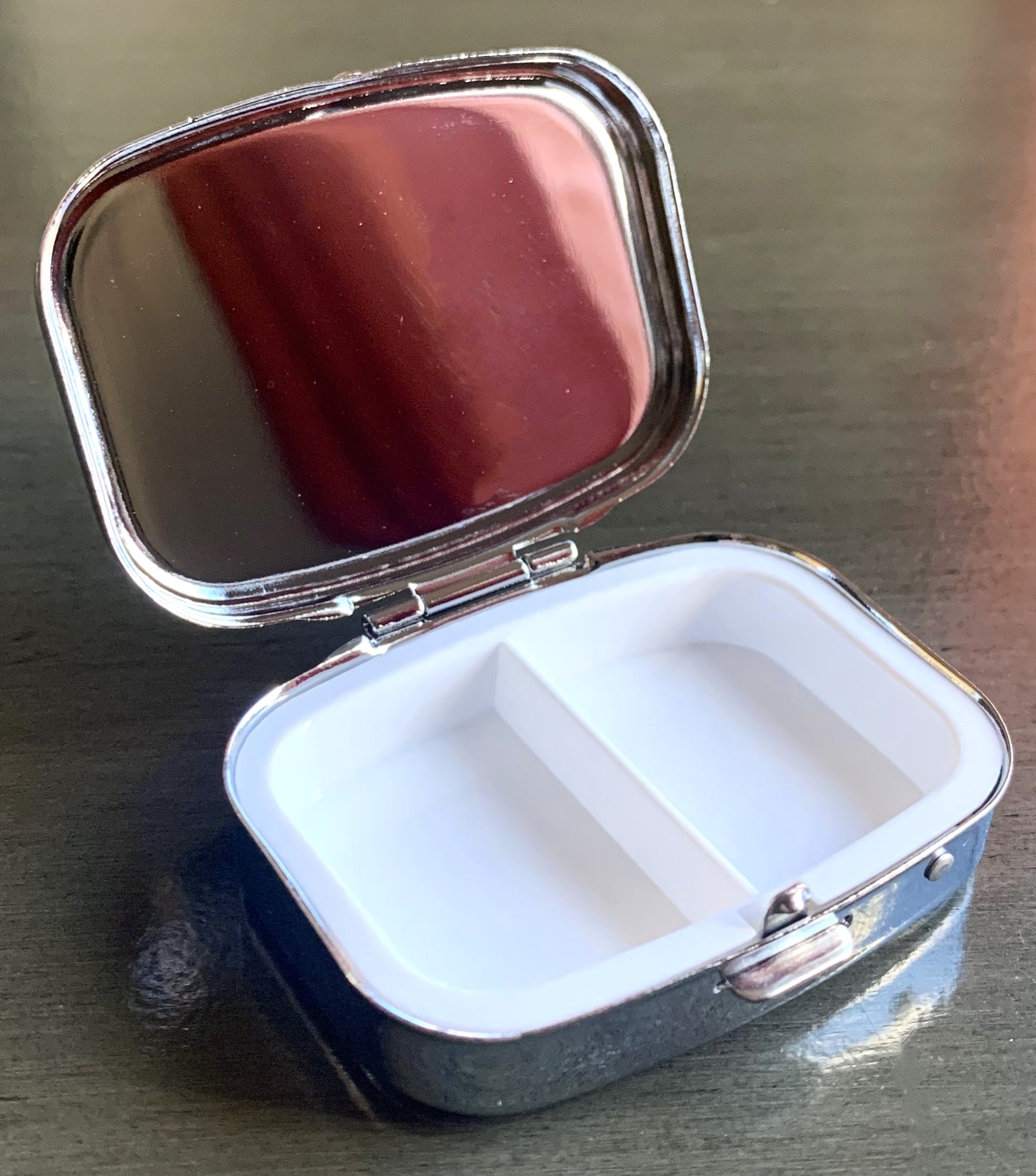 These are designed so nicely and are very handy to have. Decorative rectangular pill boxes to keep in your purse or pocket...great for travel or overnights! No more needing to tote around prescription bottles or count out the right amount of pills, vitamins, etc. to put in a sandwich bag! Decorative and discreet. These could also hold a variety of small items that could easily be lost.