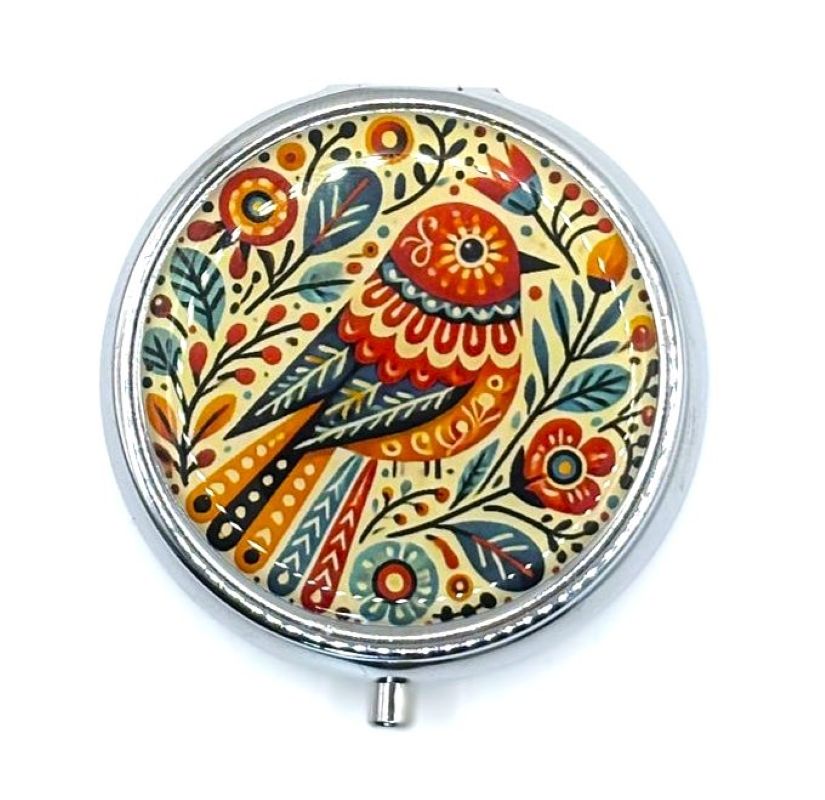 These are designed so nicely and are very handy to have. Small decorative pill boxes to keep in your purse or pocket...great for travel or overnights! No more needing to tote around prescription bottles or count out the right amount of pills, vitamins, etc. to put in a sandwich bag! Decorative and discreet. These could also hold a variety of small items that could easily be lost.