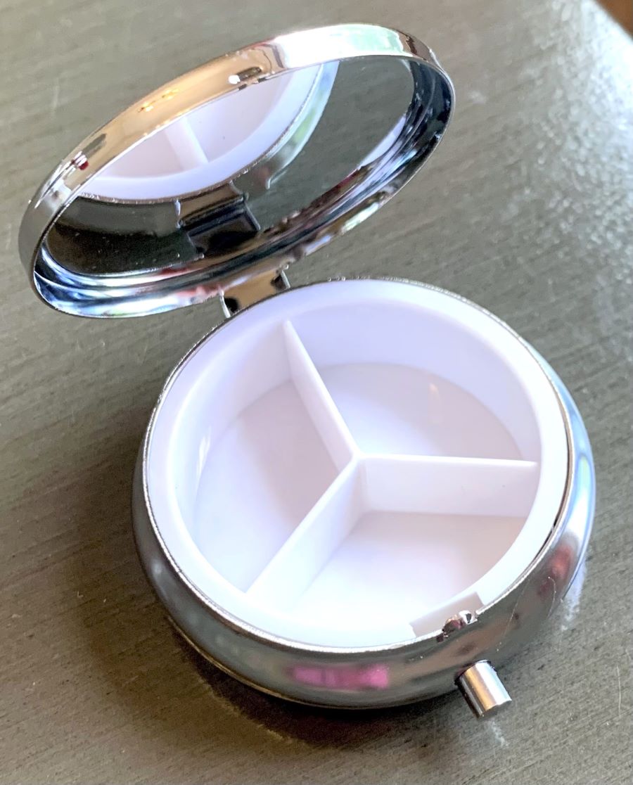 These are designed so nicely and are very handy to have. Small decorative pill boxes to keep in your purse or pocket...great for travel or overnights! No more needing to tote around prescription bottles or count out the right amount of pills, vitamins, etc. to put in a sandwich bag! Decorative and discreet. These could also hold a variety of small items that could easily be lost.