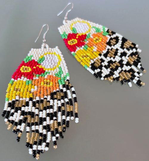 Introducing our stunning floral and leopard print hand beaded tassel earrings, the perfect accessory to elevate your Bohemian style! The vibrant colors of the flowers and animal print are beautifully captured in the intricate beadwork, making these earrings a true work of art.