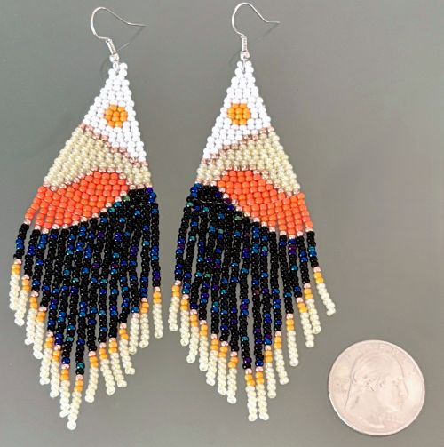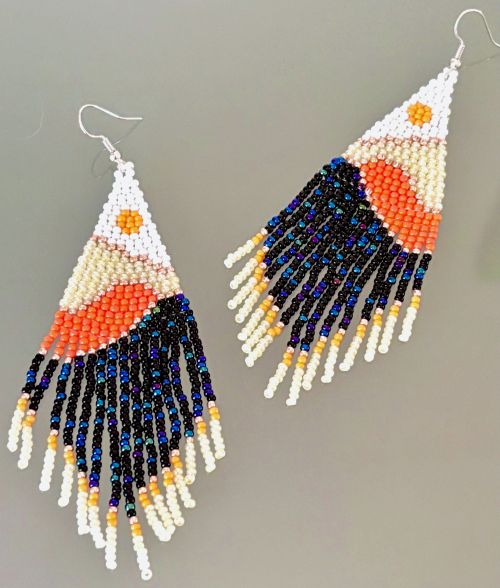 Introducing our stunning Luminous Landscape hand beaded tassel earrings, the perfect accessory to elevate your Bohemian style! These earrings are not just a piece of jewelry; they are a statement of individuality and creativity. Each pair is handcrafted with love and care, ensuring that no two pieces are exactly alike. The vibrant colors of a full sun over the beautifully colored land is majestically captured in the intricate beadwork, making these earrings a true work of art.