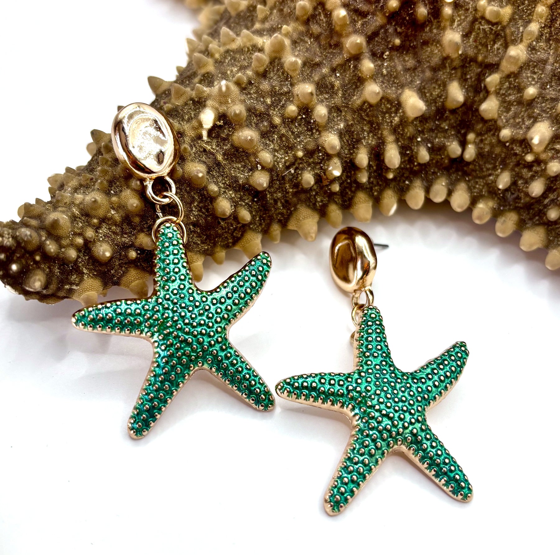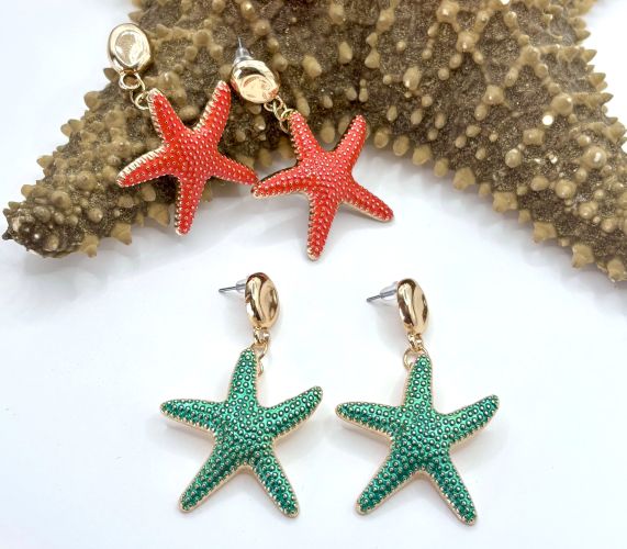 Made with attention to detail, these stylish starfish earrings are both elegant and playful. The asymmetrical design is sure to catch the eye, and they come in two colors: Coral and Teal. Sport some ocean vibes this summer with these gorgeous starfish earrings!