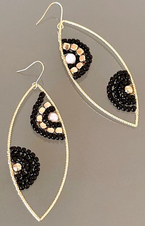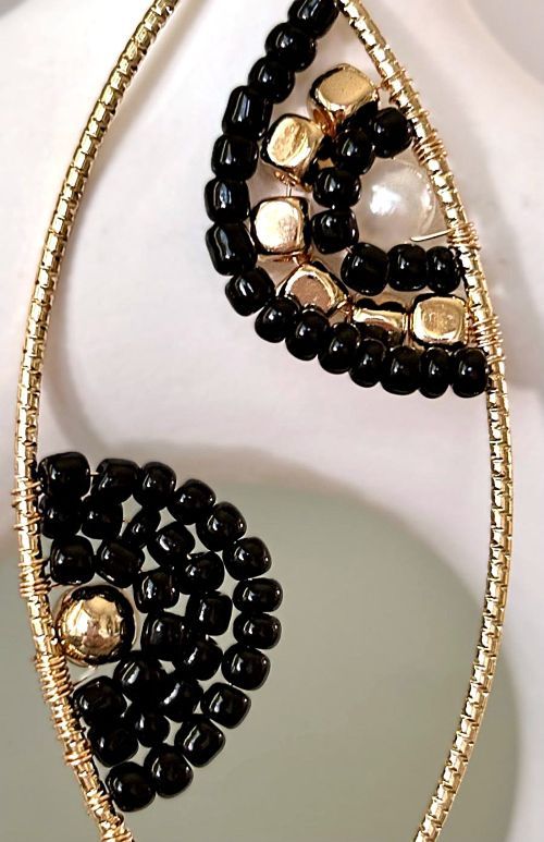 These beautiful earrings feature delicate seed beads in a beautiful black and gold color combination, adding a touch of elegance and sophistication to any look. Whether you're dressing up for a special occasion or simply want to add a stylish flair to your everyday outfit, these earrings are the perfect choice.