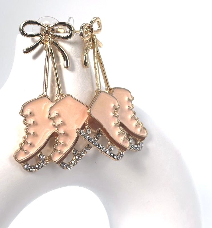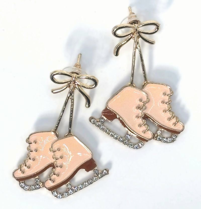 Embrace the festive spirit with our Ice Skates Holiday Earrings, the perfect accessory to brighten your winter wardrobe. Each earring showcases a charming pair of vintage-style ice skates, crafted in a soft pastel warm pink enamel that adds a touch of warmth to chilly days.