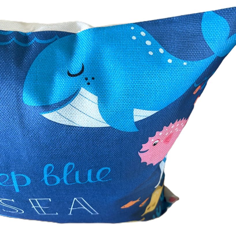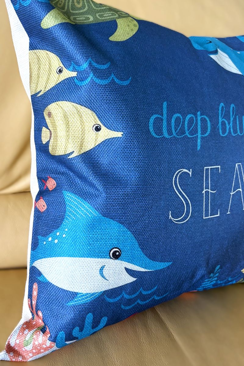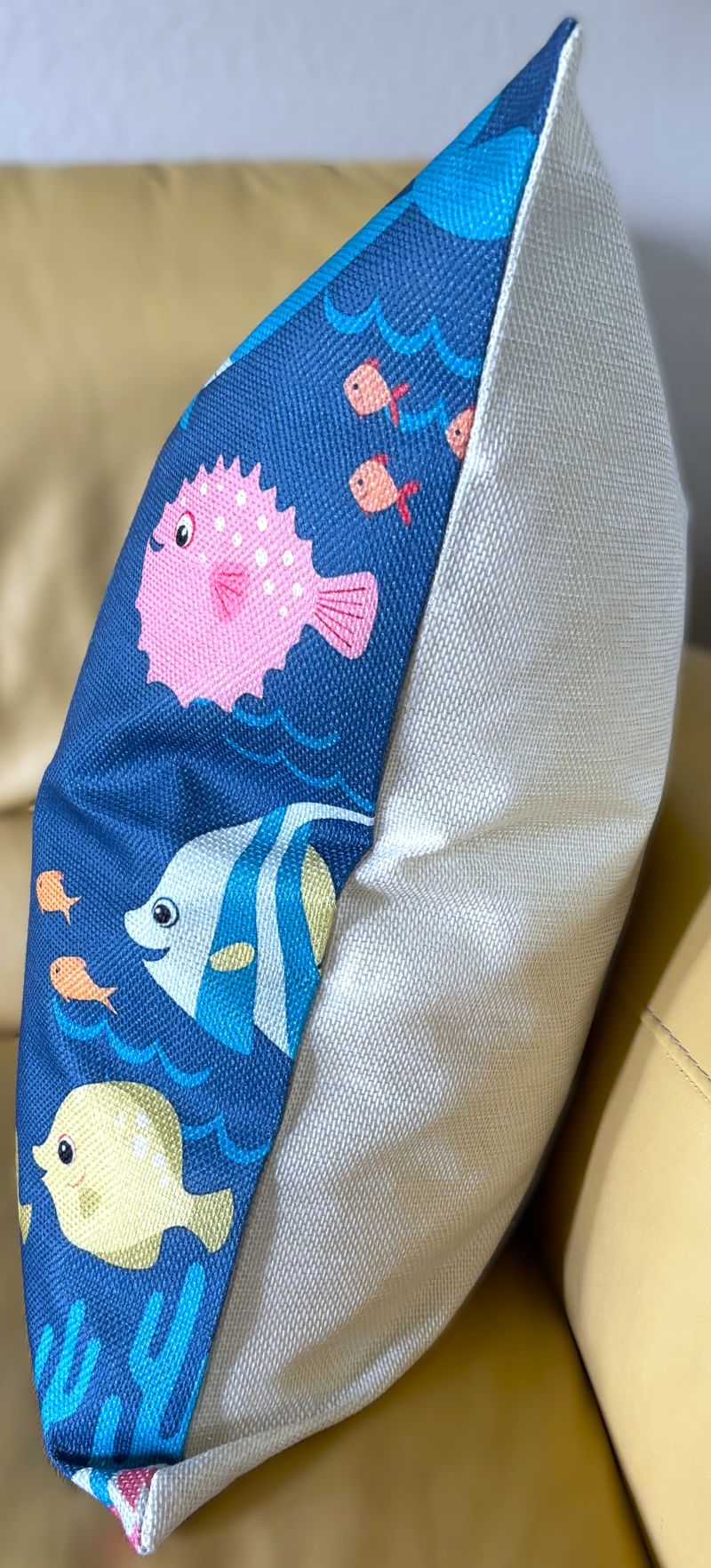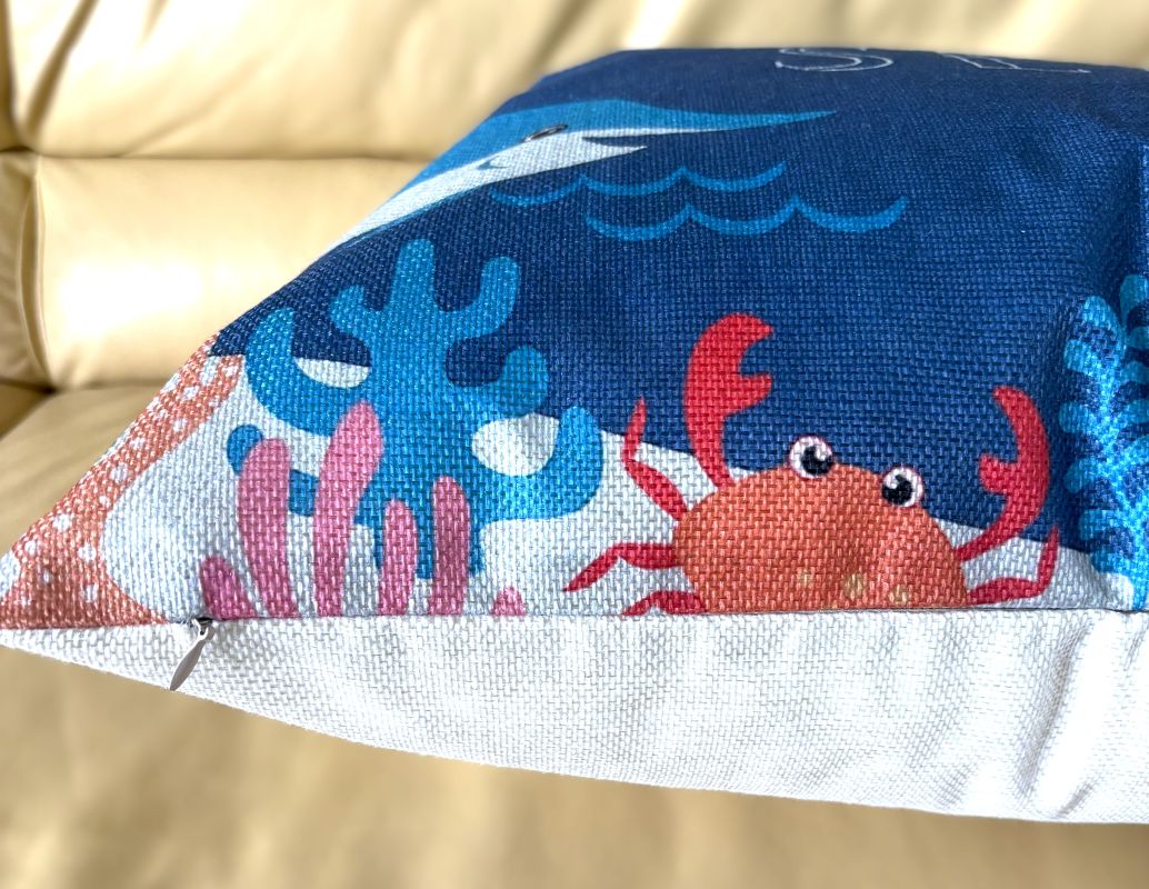 Dive into imagination with this captivating throw pillow cover that brings the wonders of the ocean right into your home. Featuring a vibrant underwater scene filled with delightful sea creatures—from playful fish and majestic whales to colorful starfish, friendly crabs, graceful sea turtles, and swaying coral—it's the perfect way to spark joy and curiosity in ocean enthusiasts of all ages.