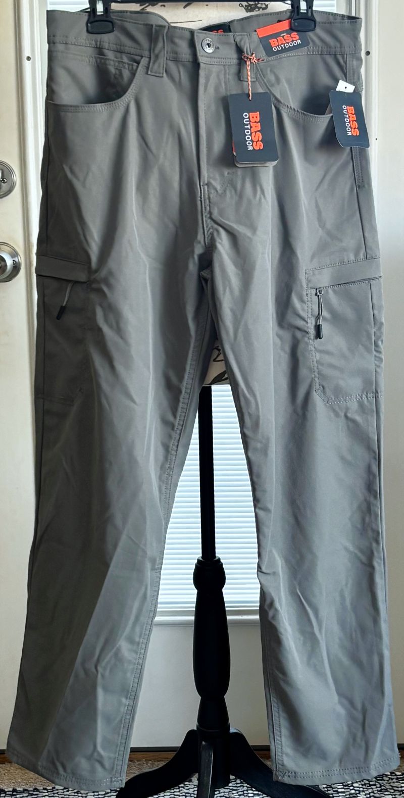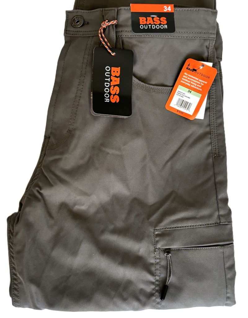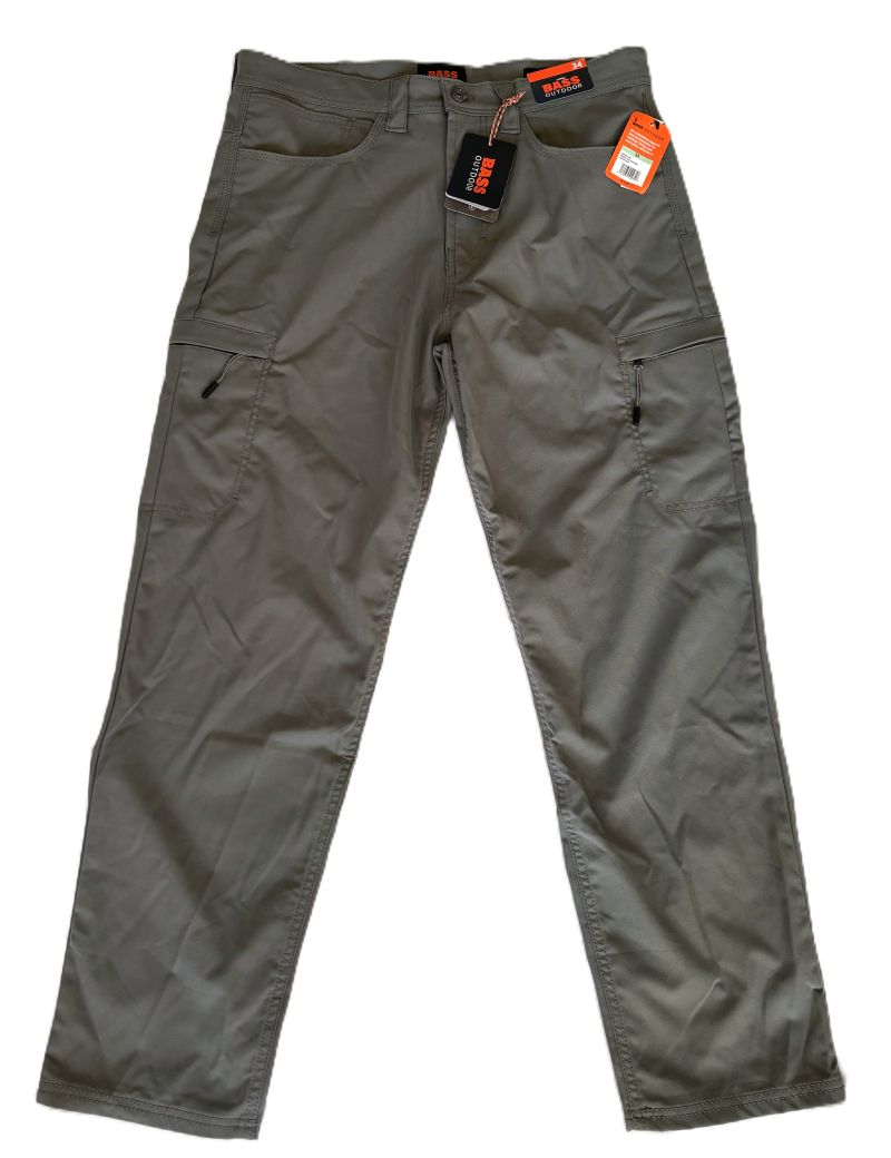 Engineered for adventure, these BASS OUTDOOR cargo pants deliver rugged functionality without sacrificing style. The water-repellent fabric and mechanical flex technology move with you through unpredictable weather and demanding terrain. Multiple pockets—including two zip cargo pockets—keep essentials secure and accessible. The mid-rise taper-leg silhouette flatters while the zip fly and belt loops ensure a secure fit. Perfect for outdoor enthusiasts who demand durability and comfort across seasons, these versatile pants transition seamlessly from trail to town. Castor Gray color.