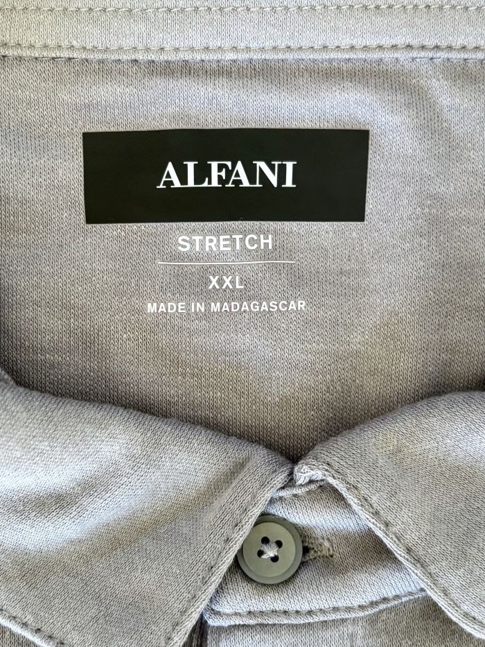 Discover effortless style with this Alfanitech by Alfani polo in Storm Gray —a neutral tone that pairs seamlessly with any wardrobe. The luxuriously soft fabric features excellent stretch for all-day comfort and freedom of movement. Crafted from recycled fibers, it's both kind to the planet and remarkably easy to care for, making it the perfect go-to piece for work or weekend wear.