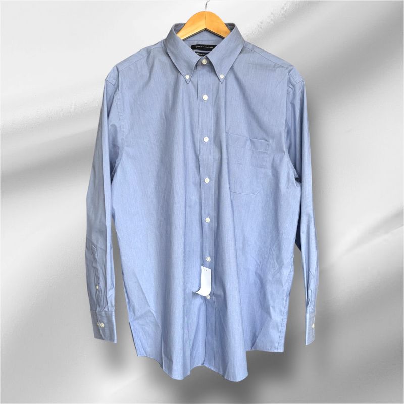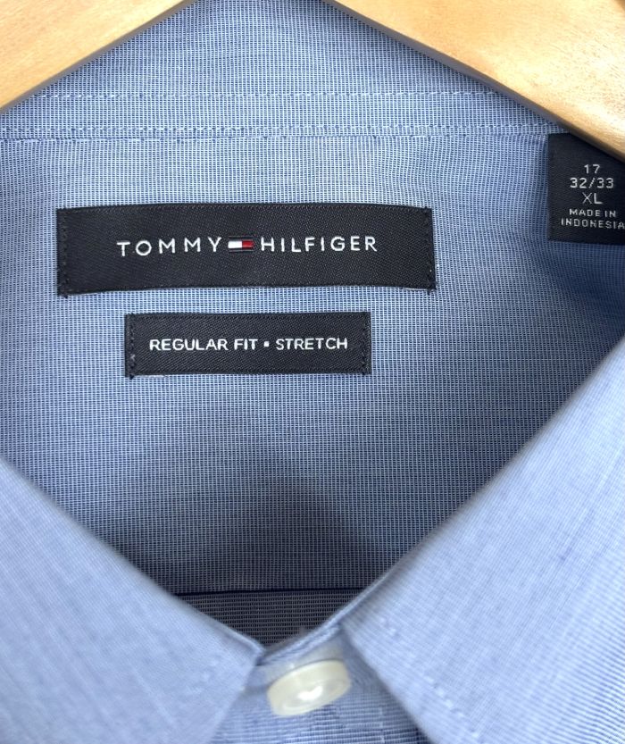 Elevate your workwear with this timeless Tommy Hilfiger dress shirt in a versatile medium blue. Crafted with stretch fabric for all-day comfort and mobility, the regular fit and button-down collar deliver polished sophistication for the office or special occasions. A wardrobe essential that pairs effortlessly with suits, blazers, or casual trousers.
