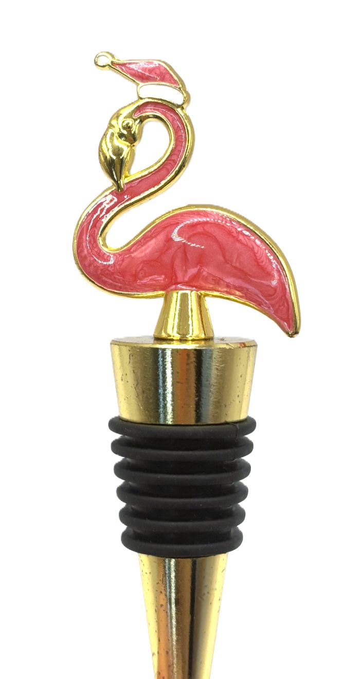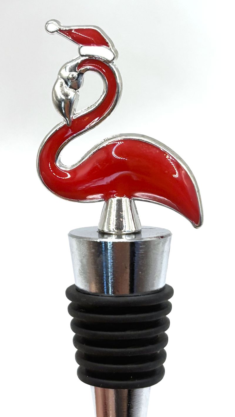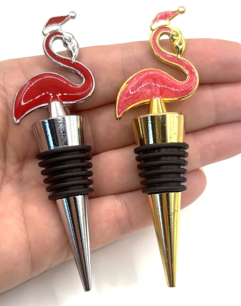 Bring holiday cheer to your wine collection with these whimsical Santa Flamingo bottle stoppers. Each double-sided design showcases a festive flamingo sporting a jolly Santa hat, visible from every angle. Choose between a striking red flamingo with silver accents or a sophisticated pink flamingo with gold details. Perfect for holiday entertaining or as a memorable gift for the flamingo lover in your life, these charming stoppers combine festive spirit with functional elegance.
