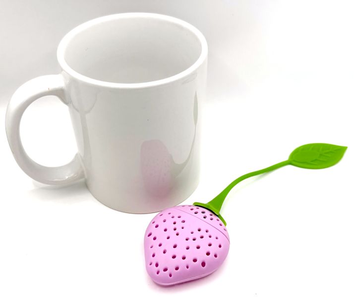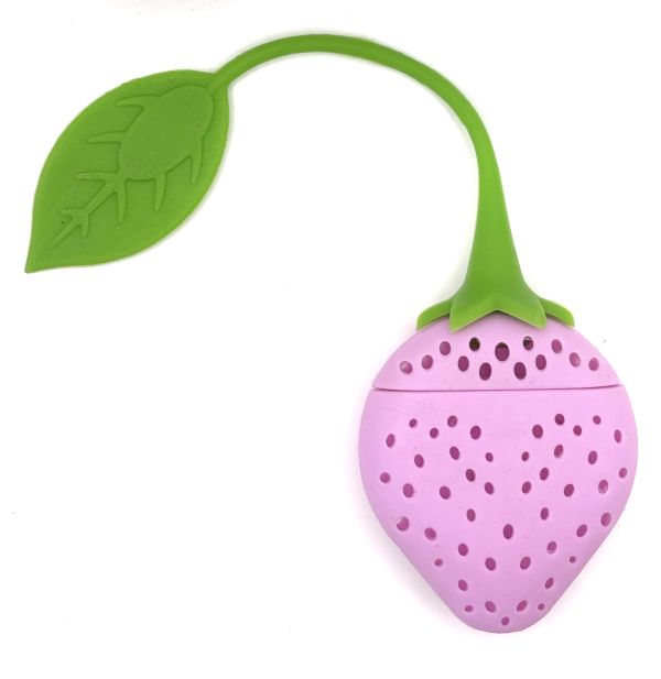 This delightful tea infuser is crafted from food-grade silicone and designed to resemble a strawberry, complete with a green leaf handle. Sized just right for a single mug, it's very easy to use—just remove the strawberry top, fill it with your favorite loose leaf tea, steep in hot water, and savor the rich flavors. Enjoy a fresh, flavorful cup every time with this charming and practical strawberry tea infuser. You will receive two of the two-piece infuser. Measures approx. 7 3/4"L x 2"W x 3/4"D.