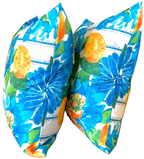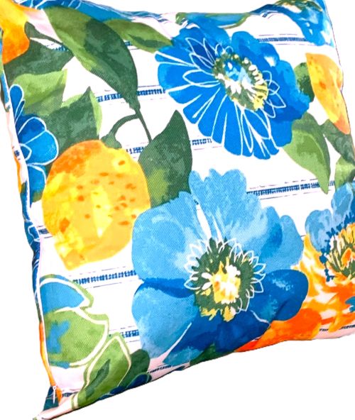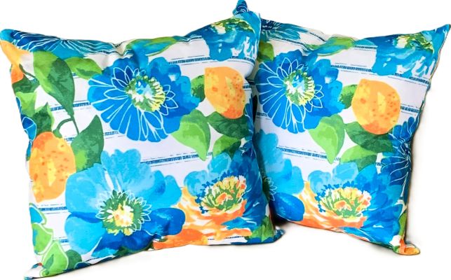 Transform your outdoor space into a vibrant retreat with this beautiful set/2 outdoor pillow covers. These cushion covers feature a lively Mediterranean design of fresh lemons and blooms, adding cheery color to your patio or garden. Complimentary shades of blue and yellow make this design 'pop' and will add flair wherever they're used!