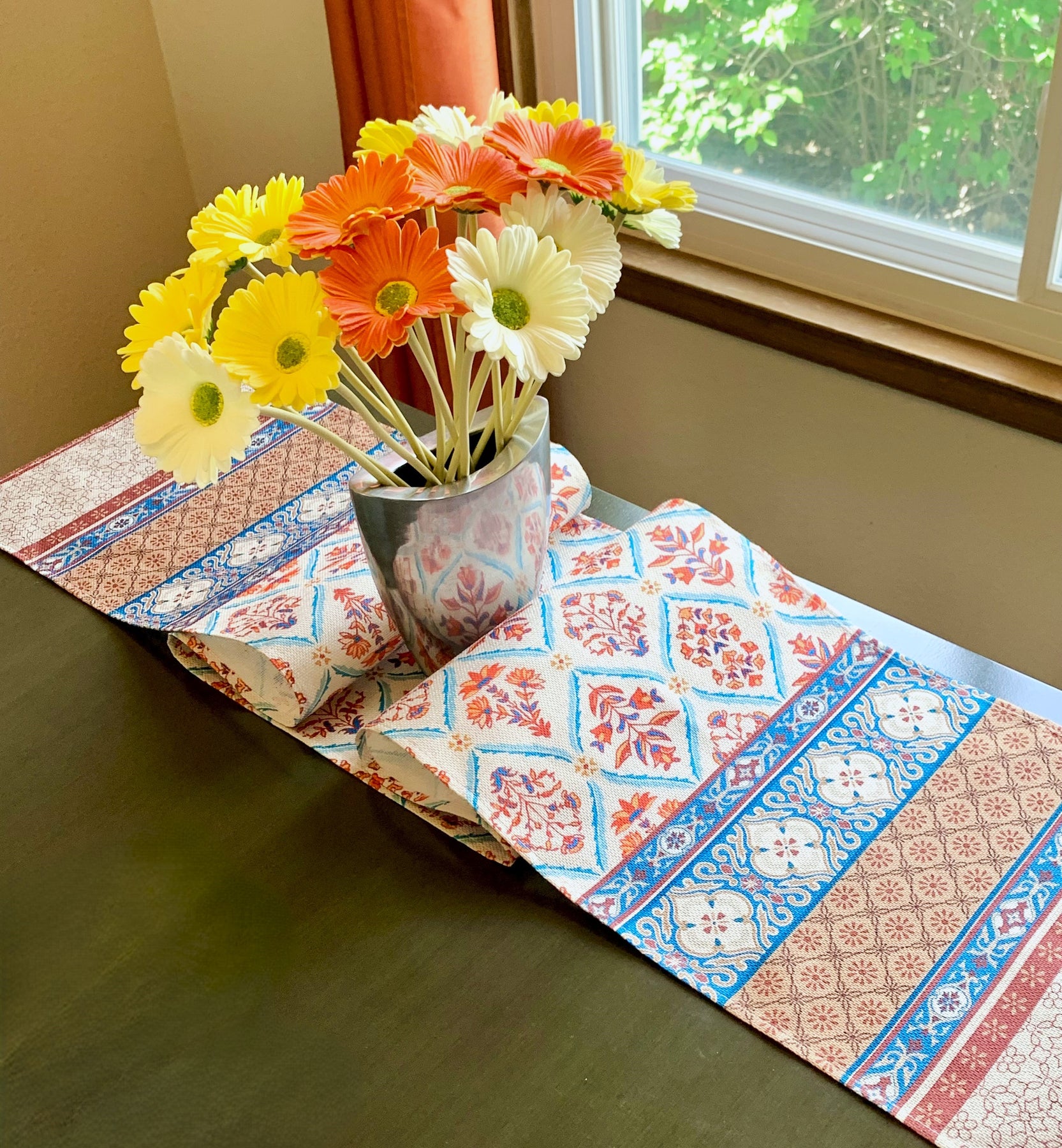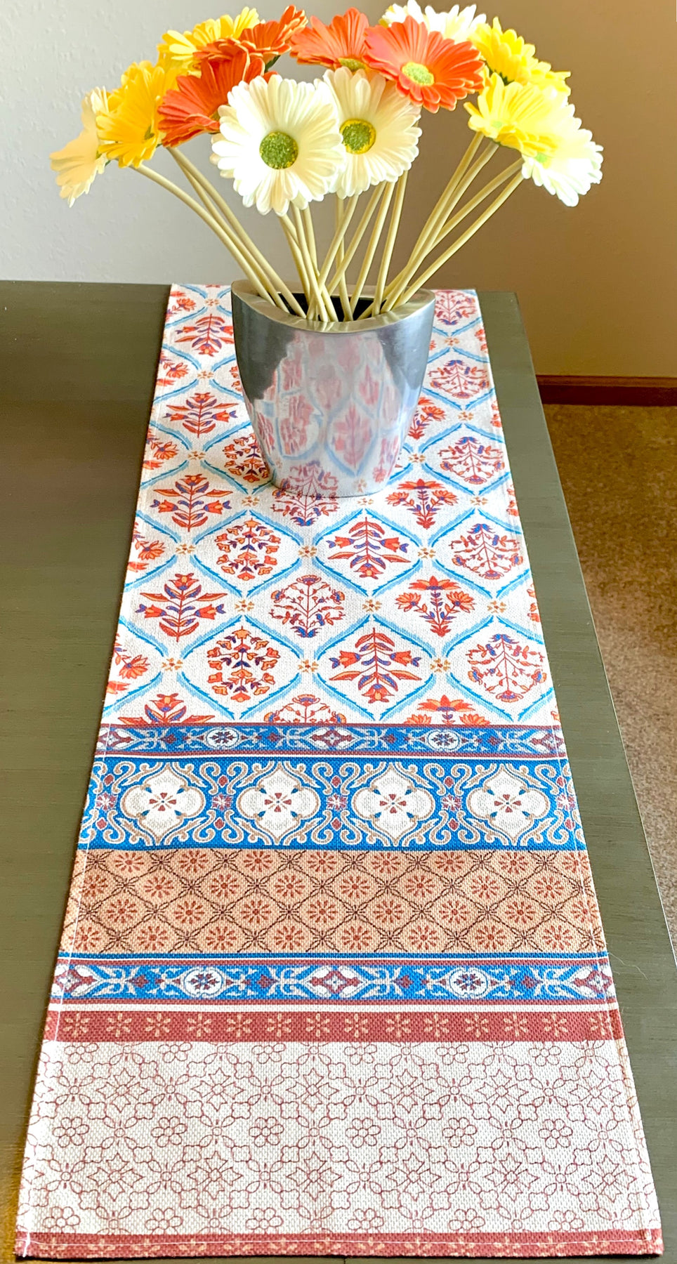 Earthy Bohemian Floral Table Runner