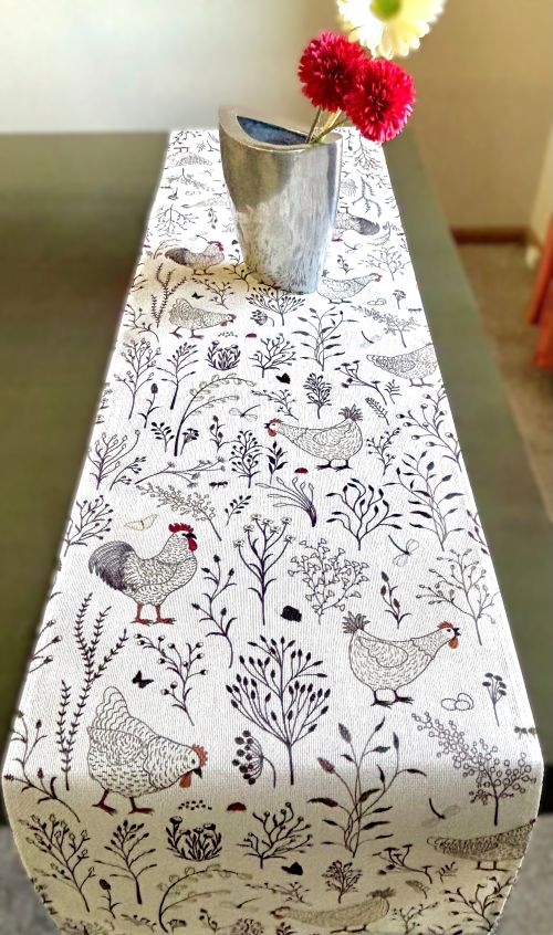 Imagine hosting a cozy family dinner or a casual brunch with friends, all while showcasing this beautiful table runner. The charming chicken print adds a playful yet sophisticated vibe, making it an ideal choice for farmhouse-themed kitchens or any space that embraces a warm, inviting atmosphere. Our table textiles are crafted to withstand the test of time, ensuring that your table runner remains a staple in your home for years to come.