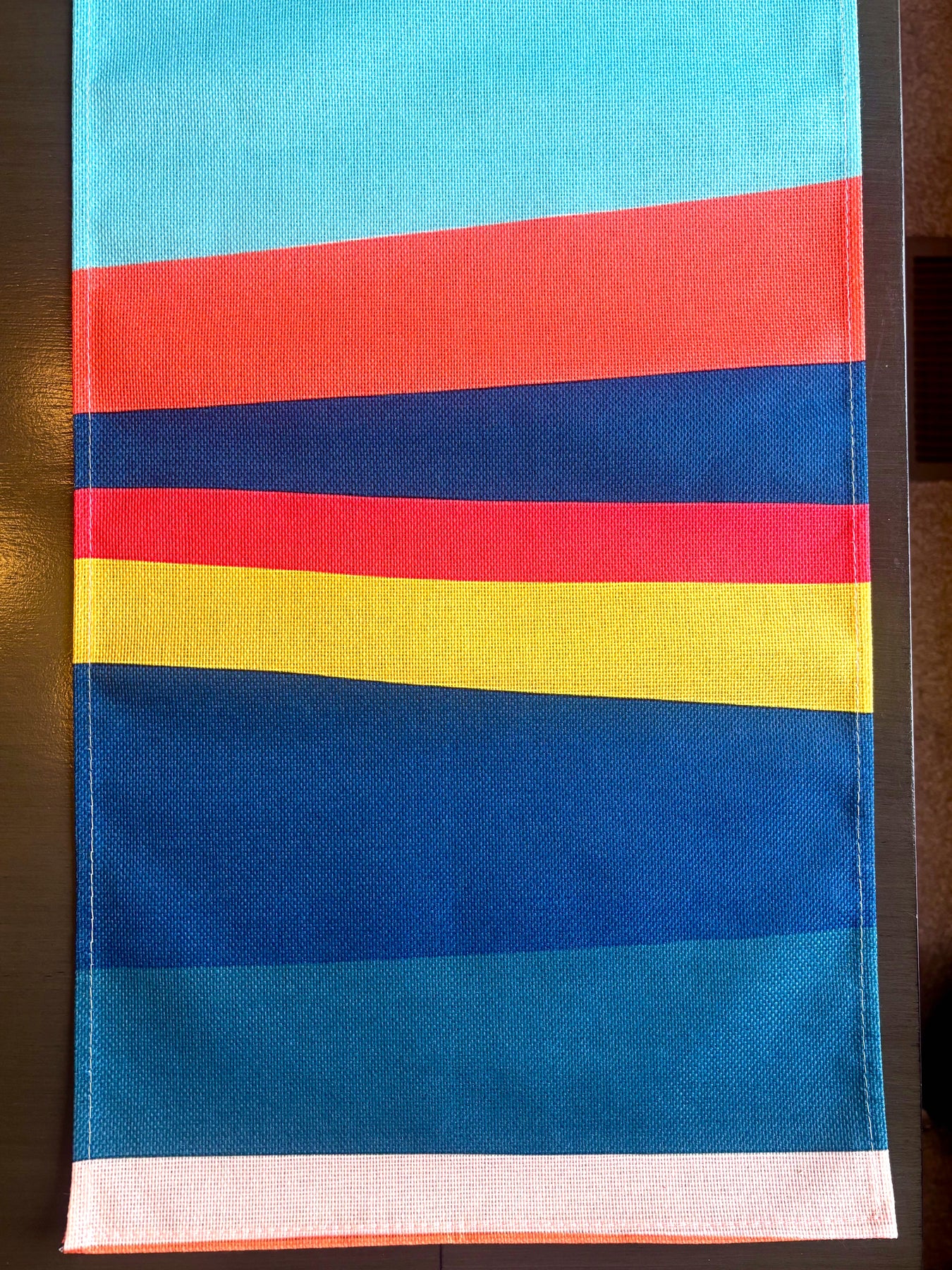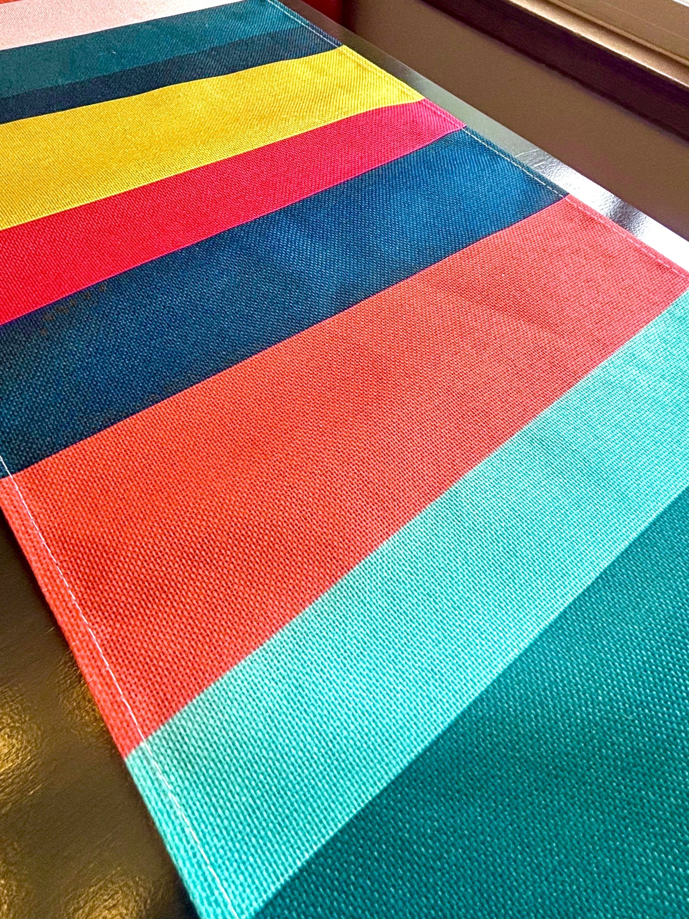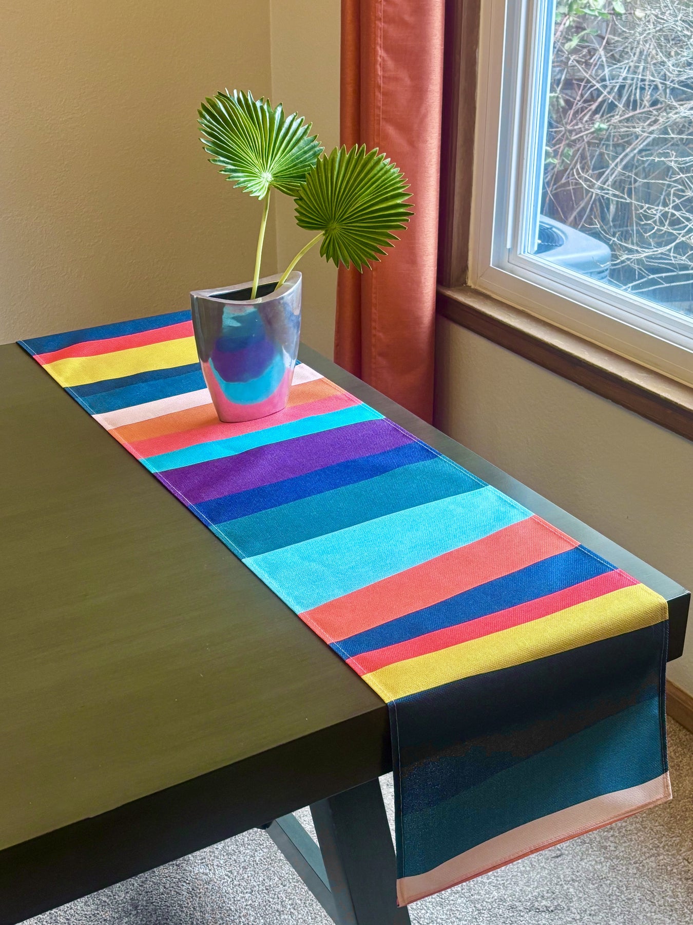 Transform your dining space with this striking table runner featuring bold, asymmetrical color blocks that command attention. The vibrant geometric design brings contemporary flair to any modern interior, instantly elevating your table setting with artistic sophistication. Perfect for those who appreciate statement pieces that blend function with eye-catching style.