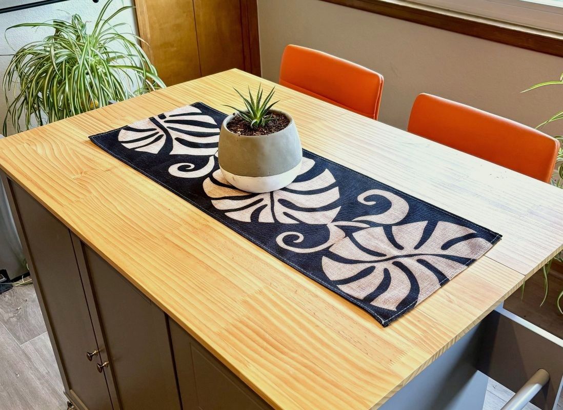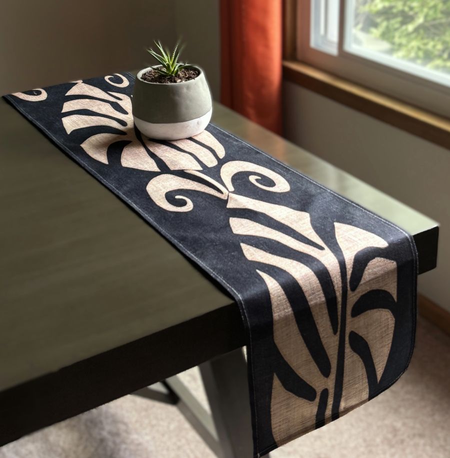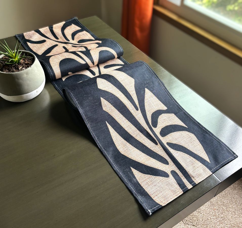 Enhance your table with this beautiful Natural Black and Beige Monstera Table Runner, showcasing an organic Monstera leaf pattern accented by elegant decorative details. The stylish black and beige two-tone palette provides a contemporary look, while the natural motif ensures it fits seamlessly with various decor styles.