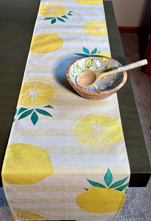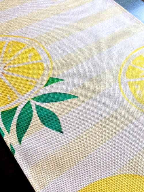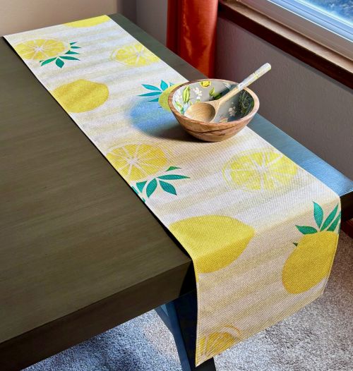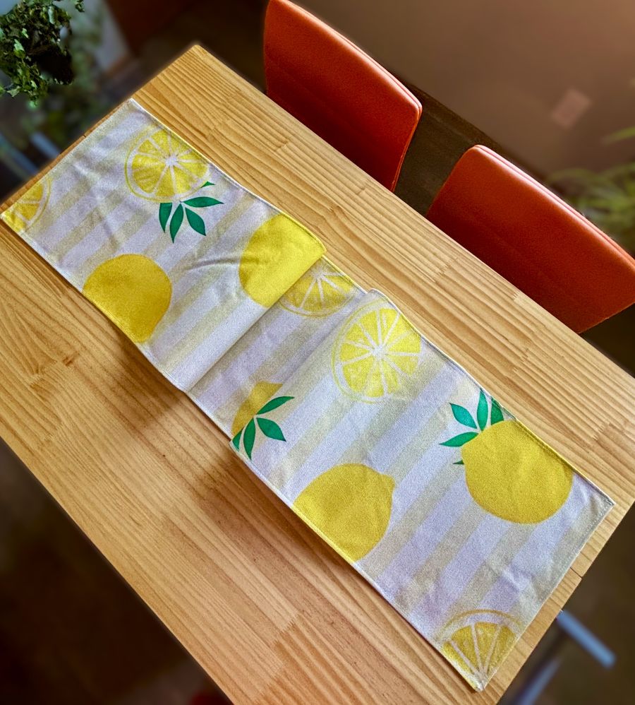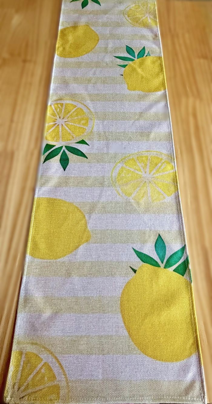Add a touch of nature to your indoor decor with this charming table runner adorned with a casual and versatile lemon pattern, perfect for refreshing summer ambiance.