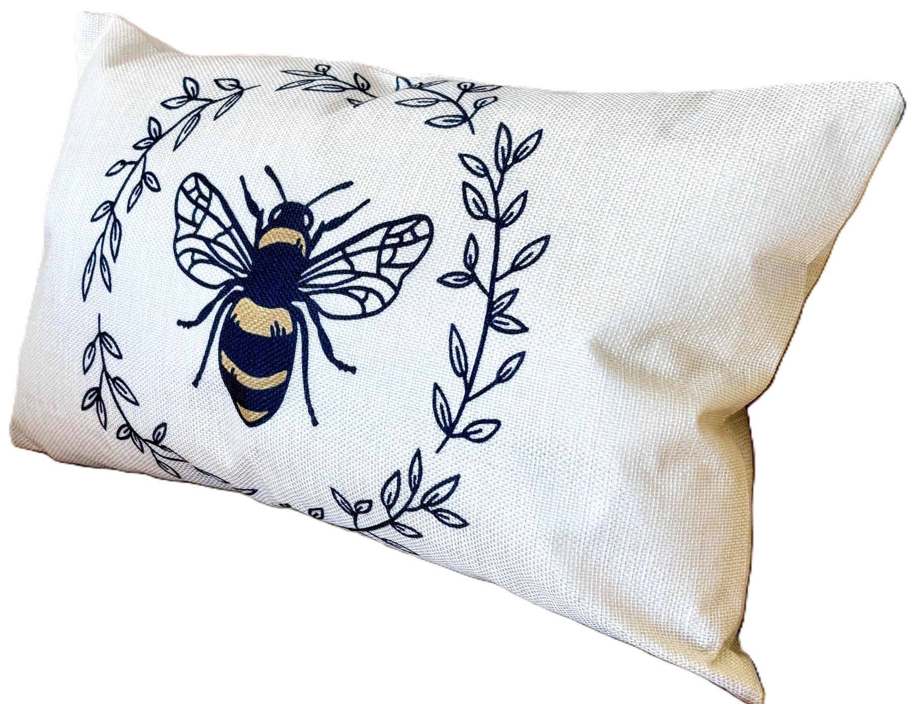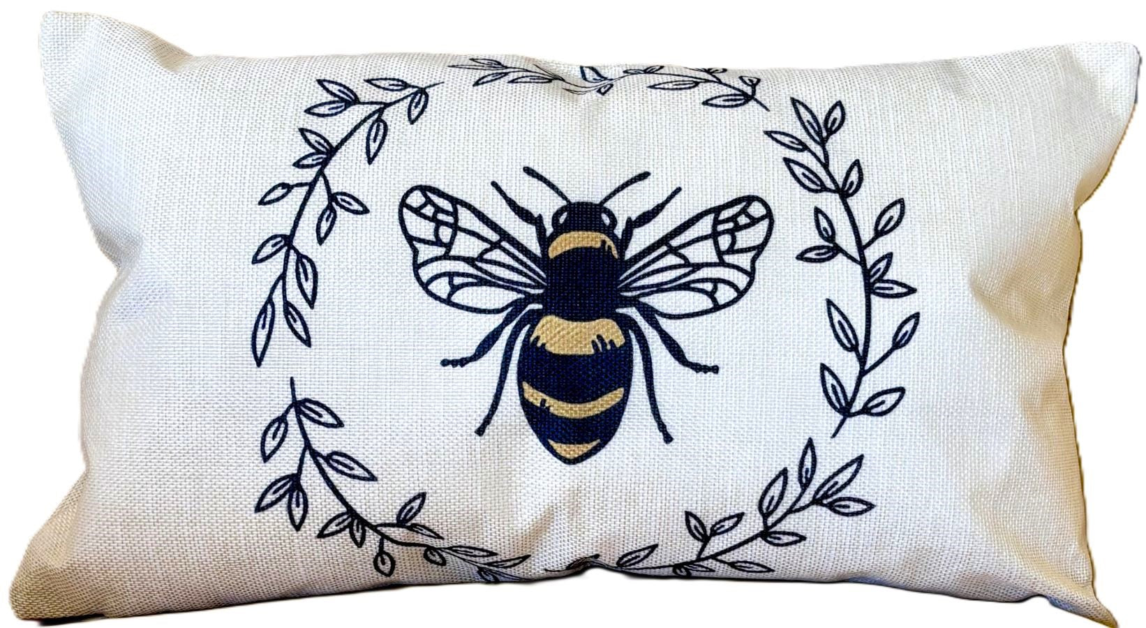 This linen throw pillow cover features a design that has elegance in its simplicity. The linen cover features a charming bee encircled by a leaf wreath design. The fresh design will uplift any room, creating a warm and inviting ambiance. The versatile design would work well with many decor schemes from Farmhouse to Contemporary.