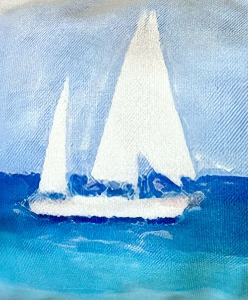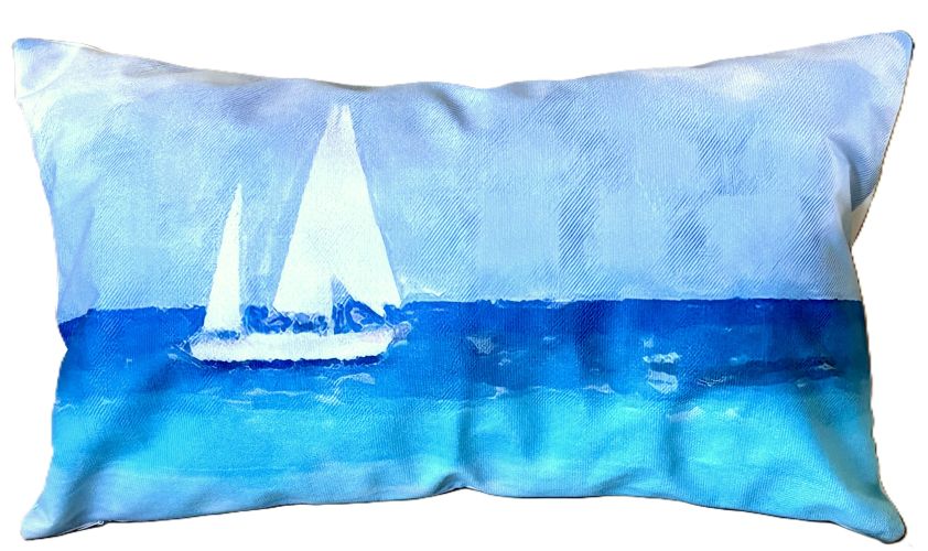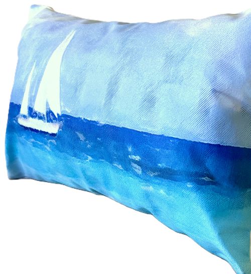 This ocean-inspired pillow cover showcases a sailboat on a stunning blue sea. The shades of water feature a gradation going from deep blue to light teal, making it a must-have for any sailing enthusiast or as a striking addition to your summer sofa decor.