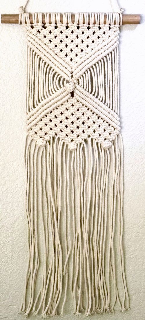 Each knot and weave is carefully crafted by skilled artisans, ensuring a unique and one-of-a-kind creation. This wall hanging was created exclusively for The Chrome Cactus Boutique by artisans in India. It is exquisite and being a completely handcrafted artisanal piece, no two hangings are exactly the same.
