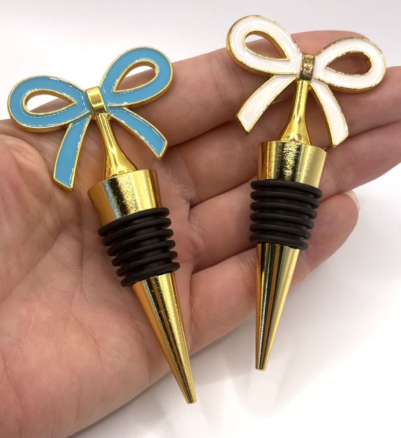 Elevate your wine collection with these charming bow knot bottle stoppers that deliver style from every perspective. The double-sided design ensures your bottles look sophisticated whether displayed on a shelf or passed around the table. Perfect for marking special moments—choose pink or blue to commemorate a new arrival, or select from four stunning colors to match any occasion. A thoughtful gift that combines practicality with understated elegance, these versatile stoppers transform ordinary bottles into conversation pieces worth celebrating.