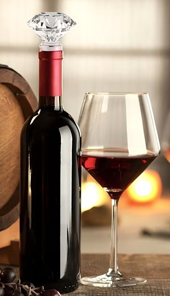 Elevate your wine service with this stunning Diamond Bottle Stopper, where luxury meets practicality. Clear glass is meticulously cut into brilliant facets that catch the light like a large diamond, transforming an everyday necessity into a conversation-starting centerpiece.