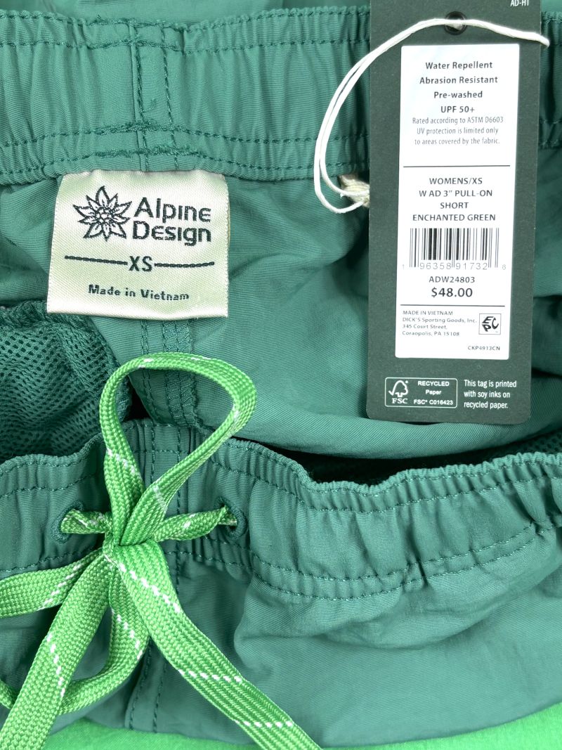Stay protected and comfortable during your outdoor adventures with these Alpine Design women's shorts in a captivating Enchanted Green. Engineered with UPF 50+ sun protection and water-repellent fabric, they shield you from the elements while resisting abrasion. The pull-on design with elasticized waistband and drawstring ensures an easy, secure fit, while dual side pockets and a zippered back pocket keep your essentials within reach. Pre-washed for immediate wear, these mid-rise shorts are your go-to choice for hiking, camping, or everyday exploration. Available in XS.