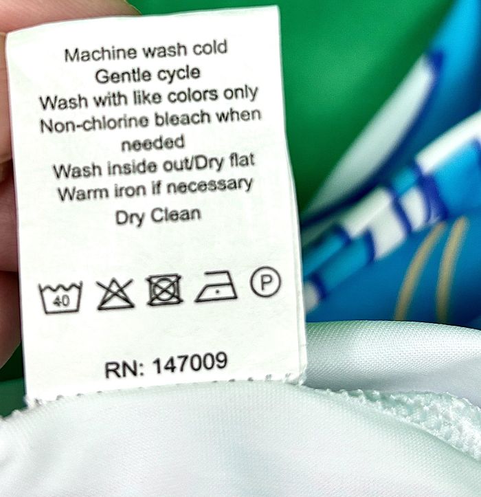 82% Polyamide/18% Elastane (aka Spandex/Lycra). Very smooth and stretchy fabric - feels like the fabric of a high-end swimsuit. Machine wash cold, gentle cycle/Dry flat. Brand new without tags.