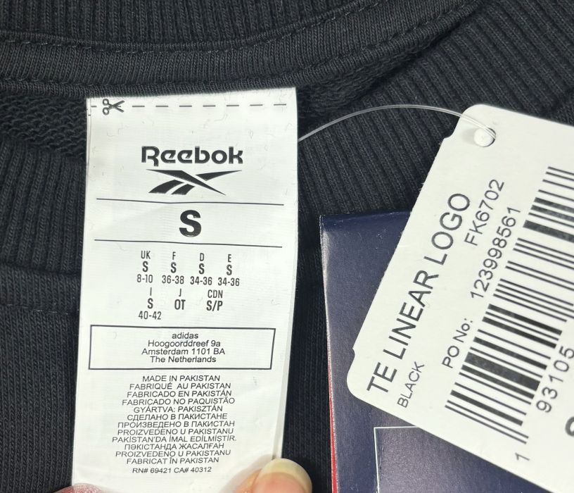 Women's Reebok Black White TE Linear Logo Sweatshirt (Small)