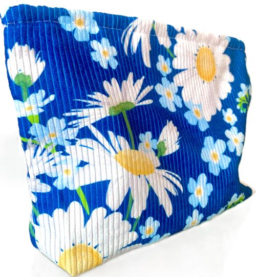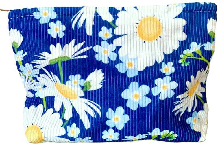 Welcome to our collection of stylish and practical zippered pouches, where fashion meets functionality! This trendy pouch features a beautiful daisy floral design, with vibrant blue hues that will add a pop of color to your outfit. Made from high-quality, lightweight corduroy material, this pouch is not only fashionable but also durable, ensuring it lasts for a long time.