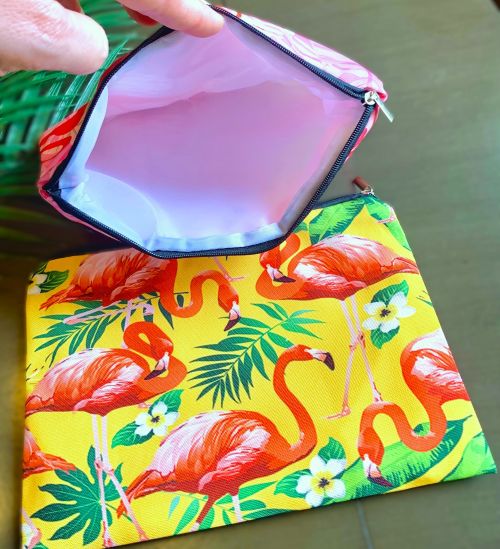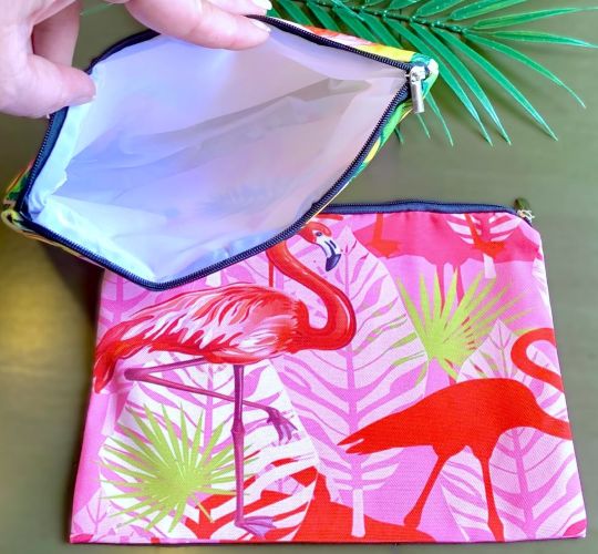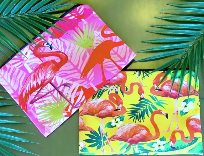 Pink flamingos adorn these lively and vibrant tropical zippered pouches. Whether you're looking for a stylish cosmetics pouch or a trendy accessory to carry your essentials, this bag has got you covered. The vibrant and colorful design of these pouches will instantly elevate your outfit and add a touch of summer vibes to your look.