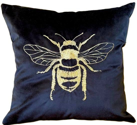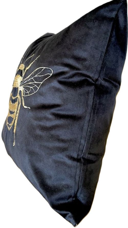 This black velvet pillow cover is very soft and elegant. The embroidered bee adds a touch of sophistication to your decor. Crafted with precision, this pillow cover is made with high-quality materials for an elegant and luxurious touch. The bee design is skillfully embroidered with metallic gold thread, adding a stunning element to your space.