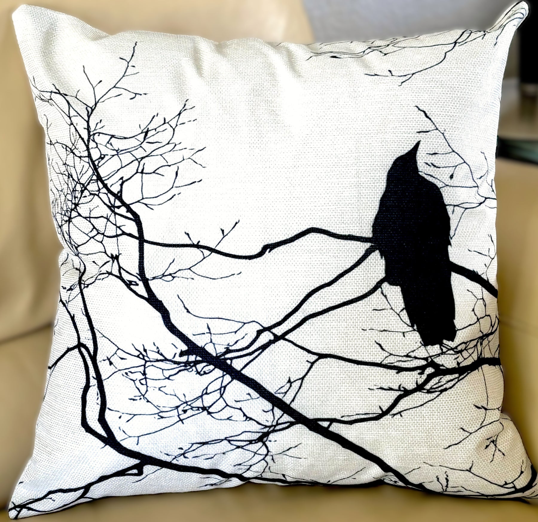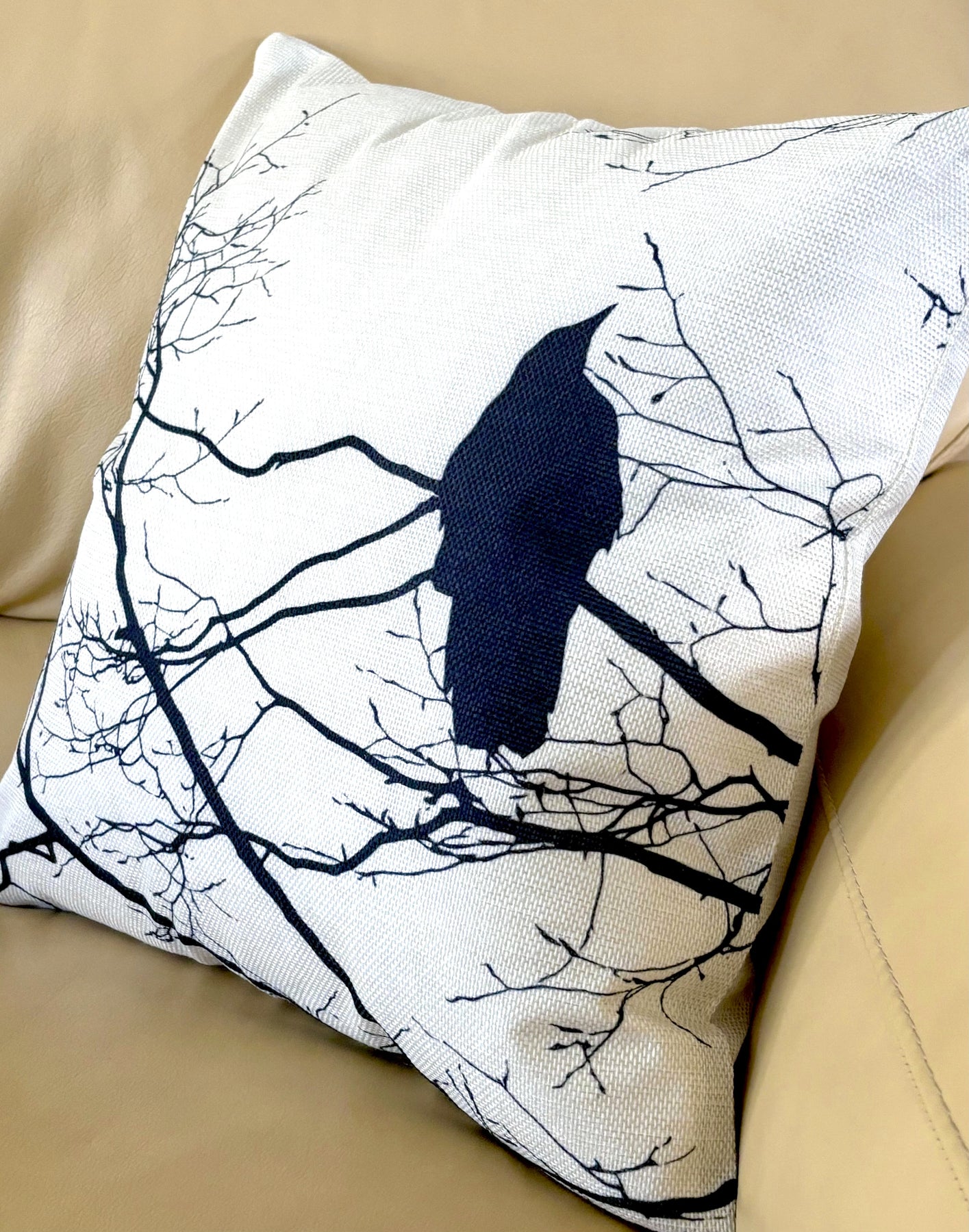 This throw pillow cover is as artistic as it is spooky. It features a very interesting design of a black raven perched on a branch in a maze of branches. This can be displayed during the autumn months (definitely for Halloween) but would also look intriguing in certain decor schemes throughout the year.