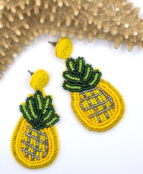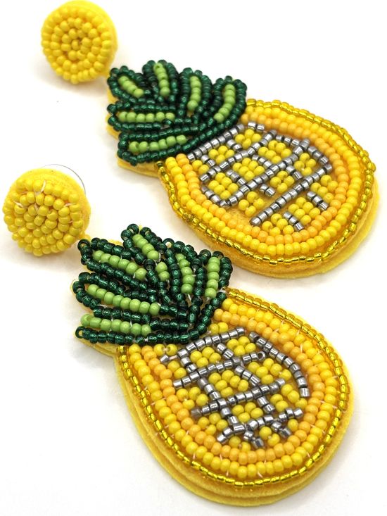 These hand beaded pineapple earrings feature vibrant hues and a lively tropical fruit design, adding a delightful touch to our Fresh Summer Fruit collection.