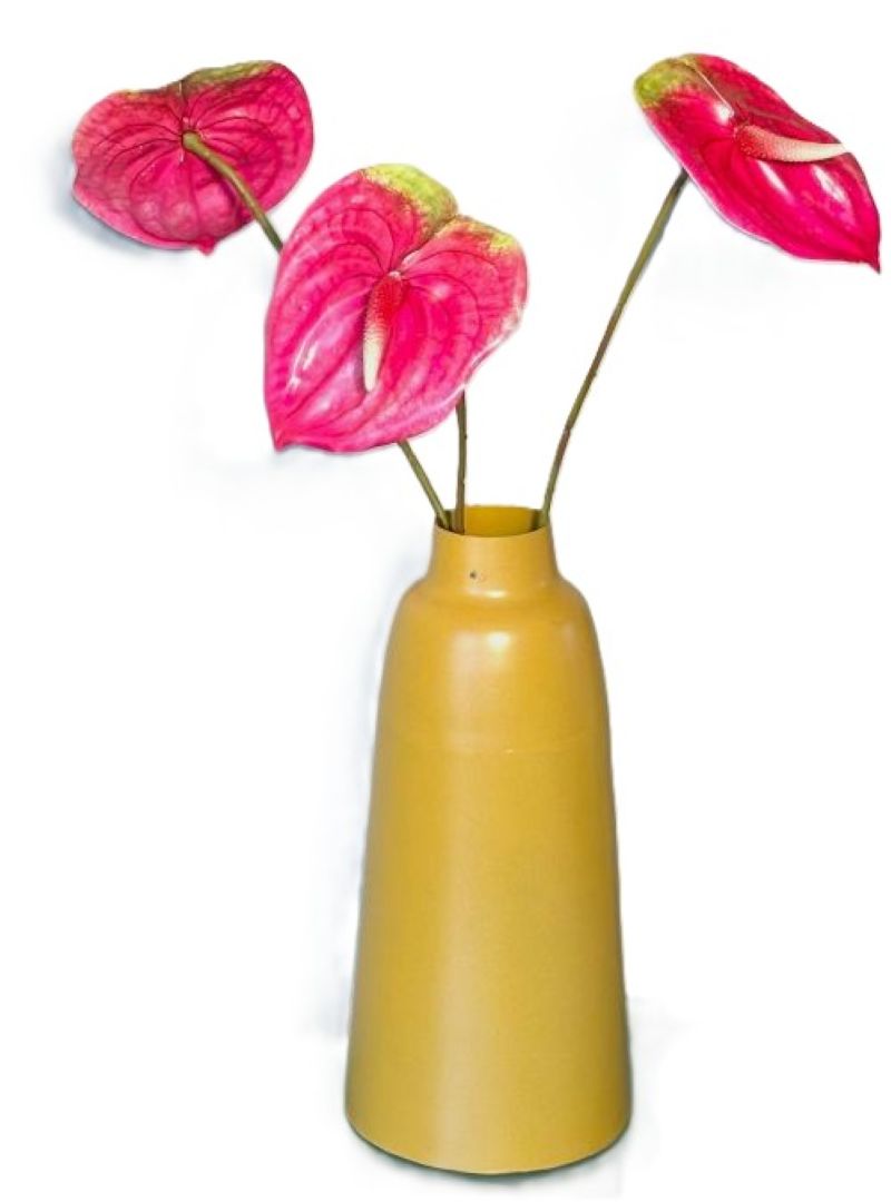 These Anthurium stems are lifelike and elegant. The beautiful tropical flower stems stand a tall 22 1/2". These vibrant pink flowers make a fabulous display on their own, or mixed in with other flowers or foliage to create an extravagant arrangement. The protruding spadix is removable so you can make the flower look exactly as you'd like. It measures approx. 2 1/4" long. Crafted of durable latex, rubber and plastic these stems are able to be entirely posed to your liking.