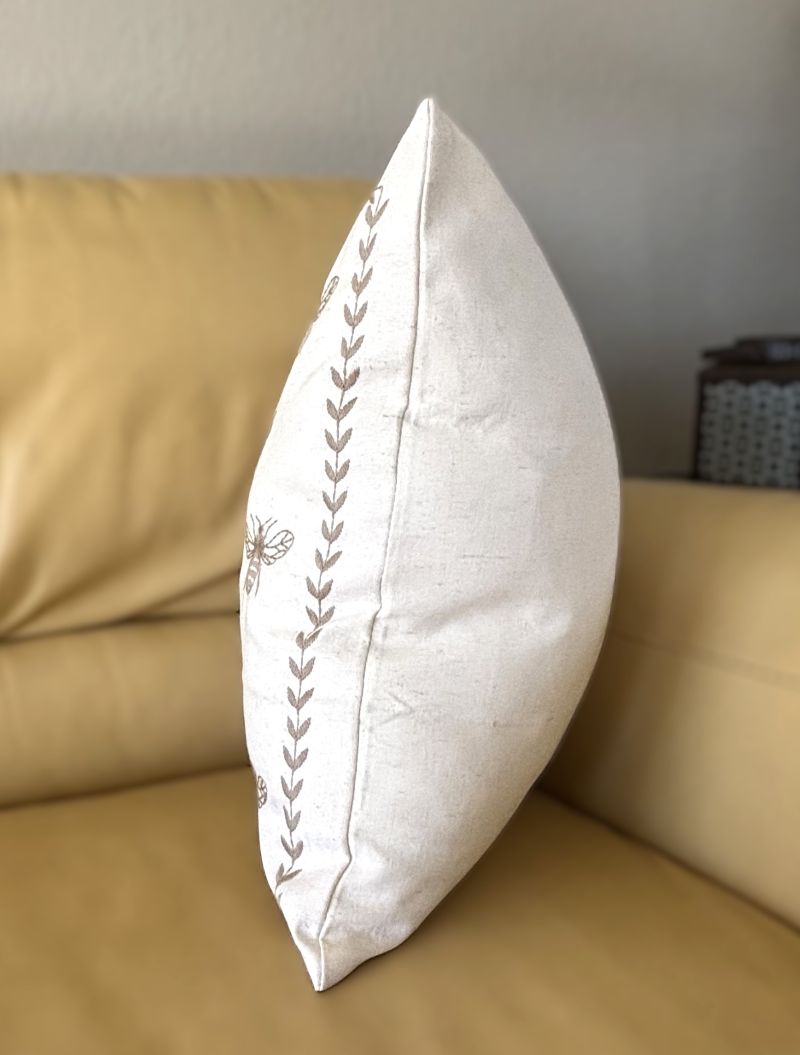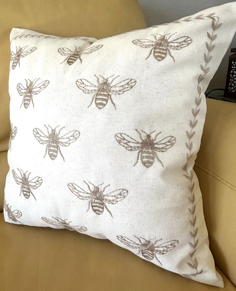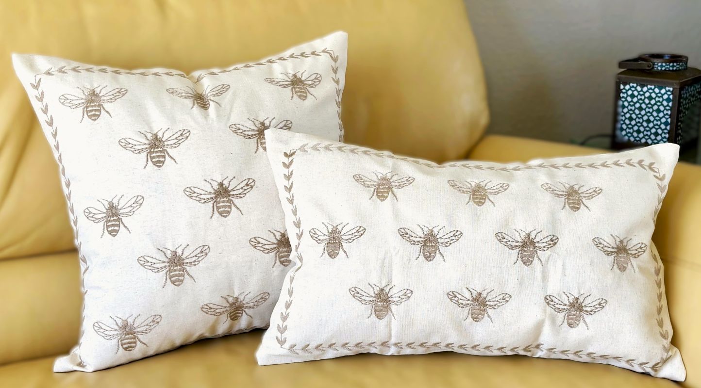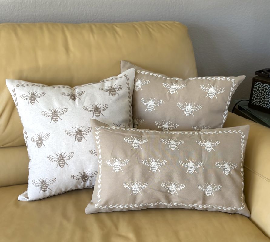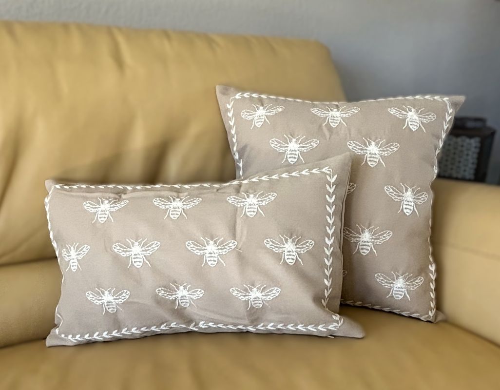 Taupe and Off-White Farmhouse Embroidered Bee Pillow Cover Collection