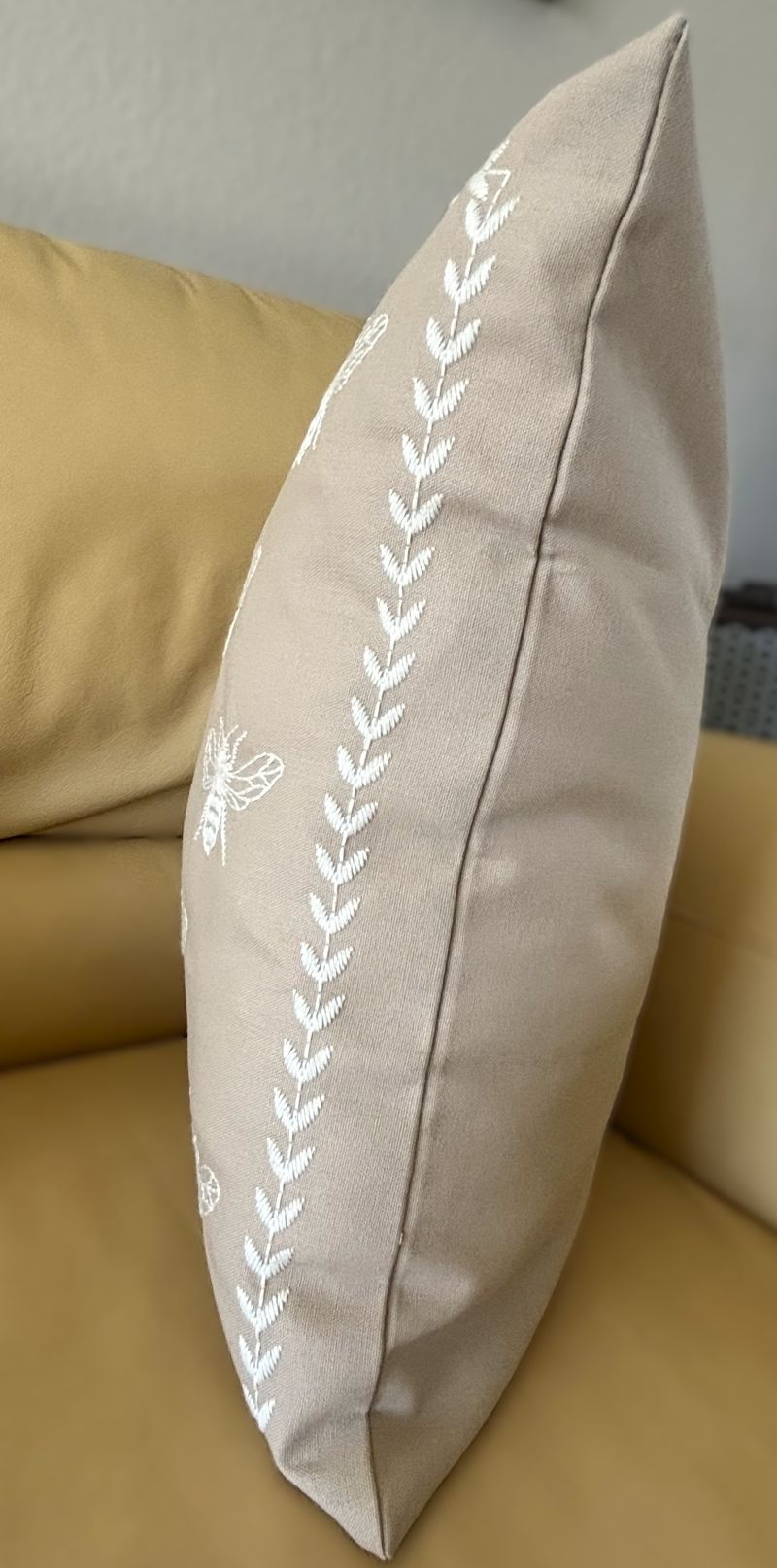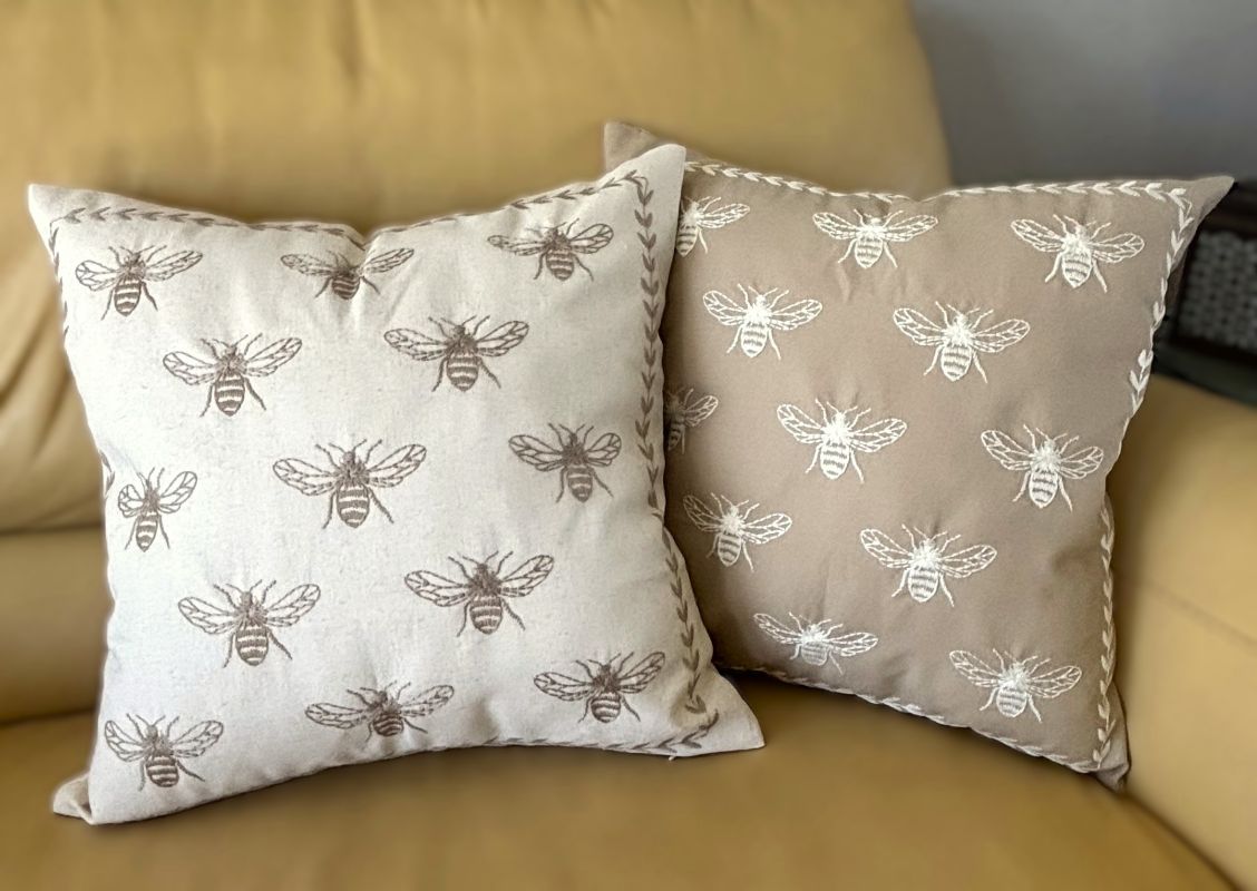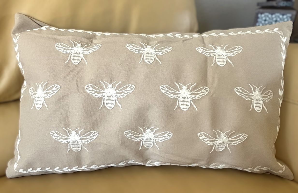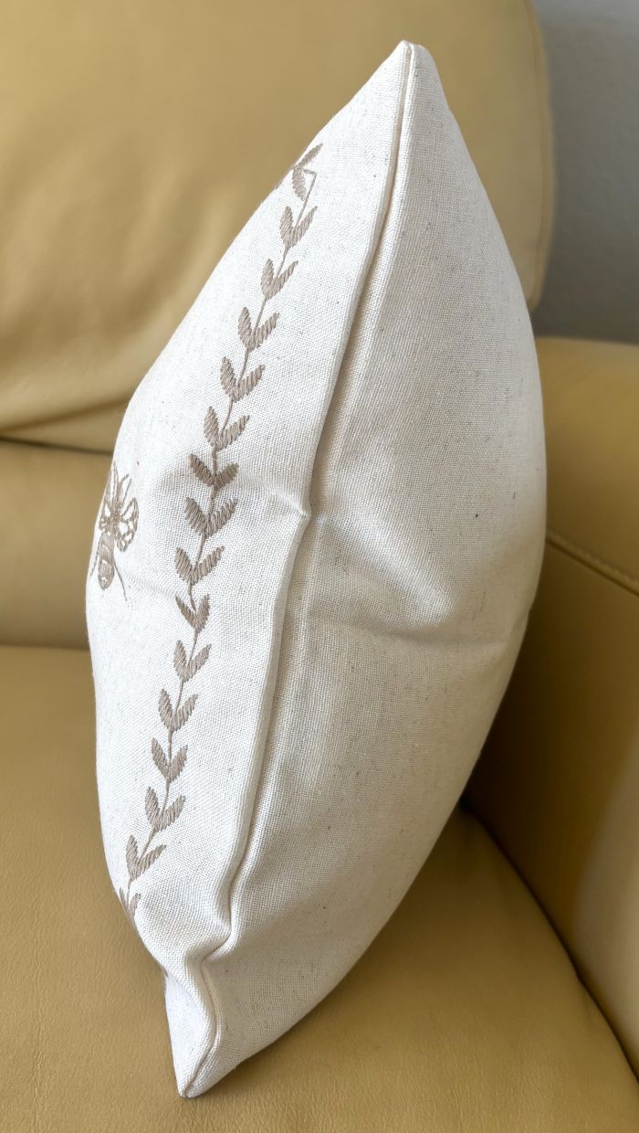 Taupe and Off-White Farmhouse Embroidered Bee Pillow Cover Collection